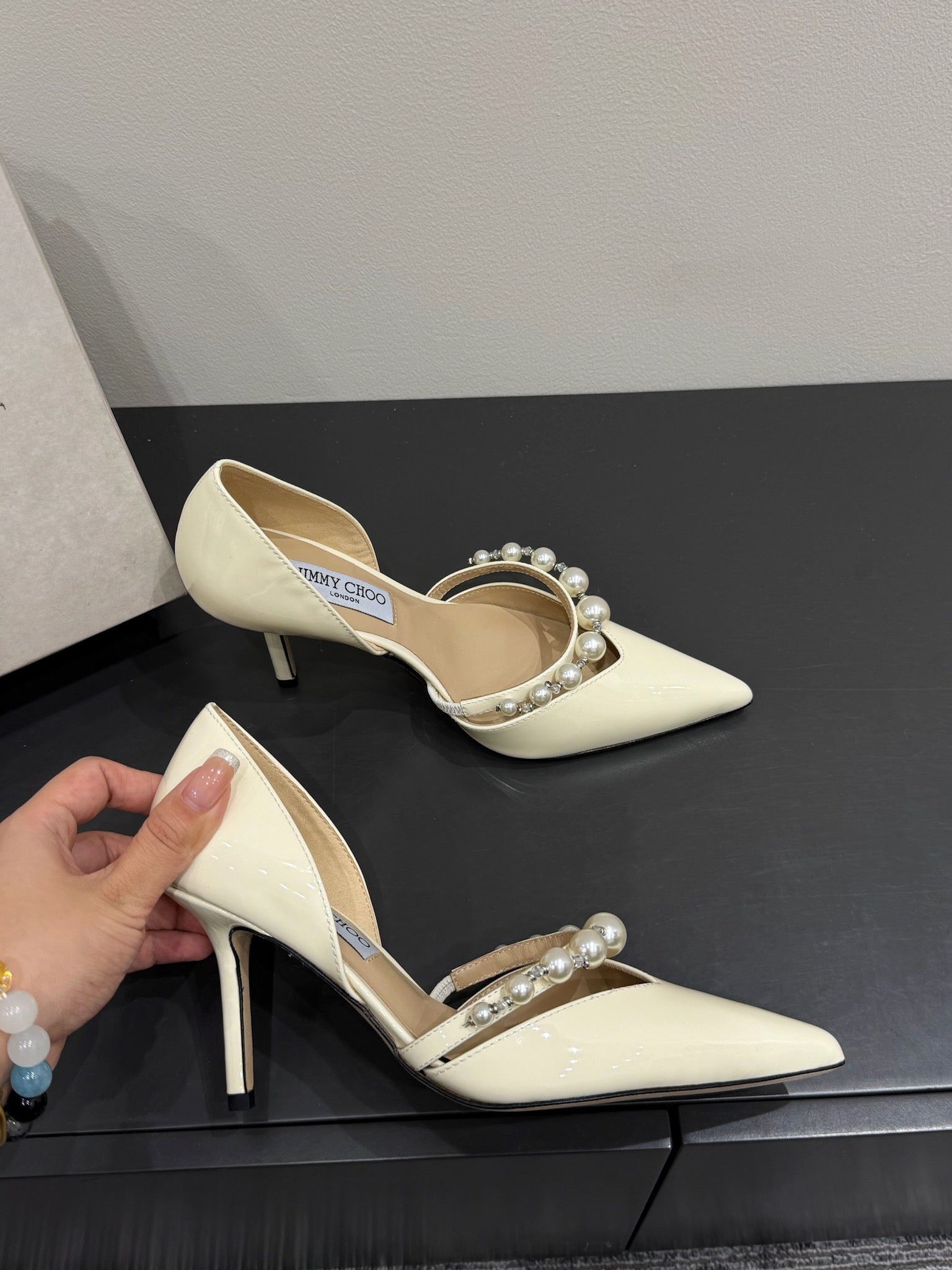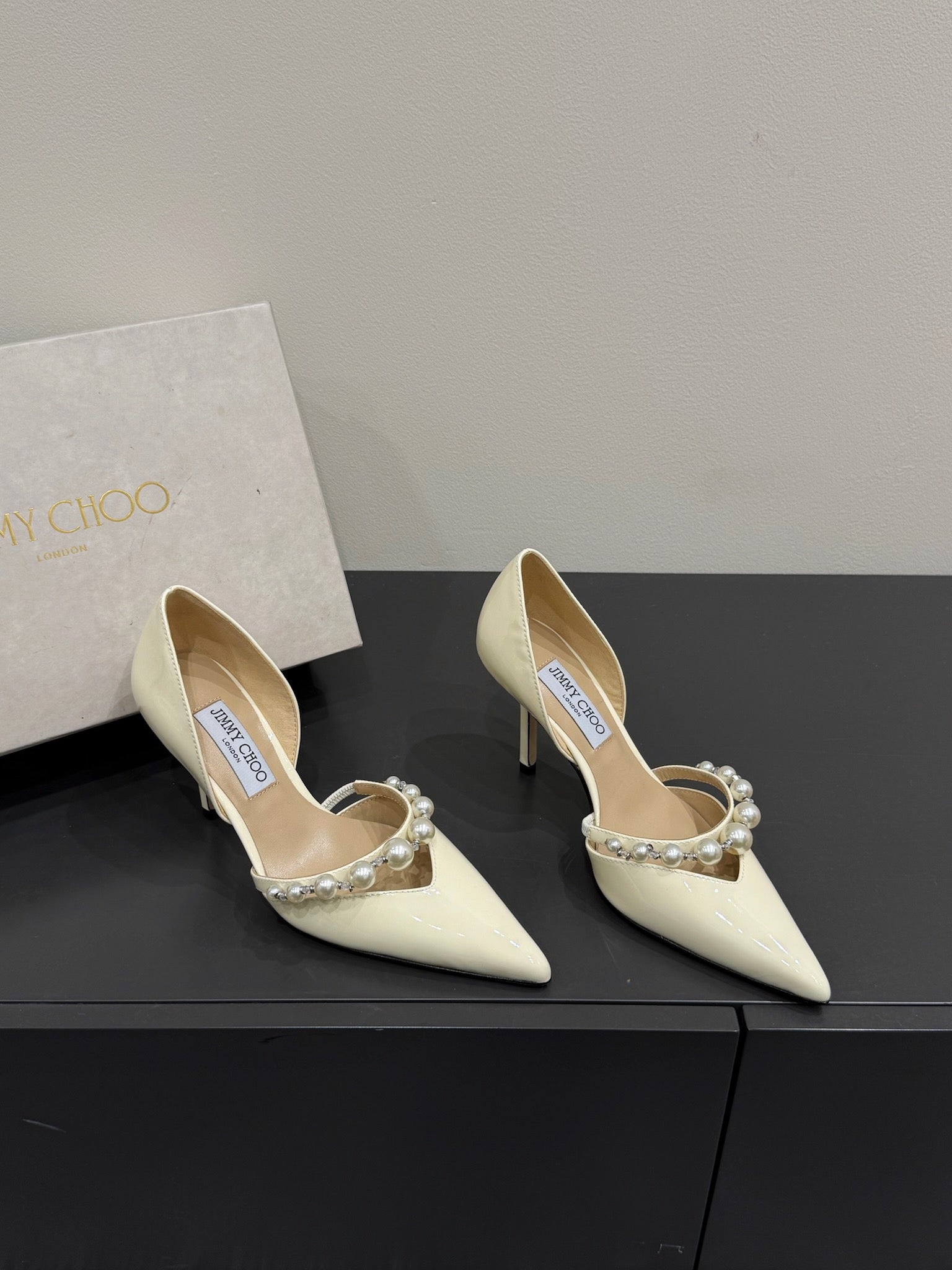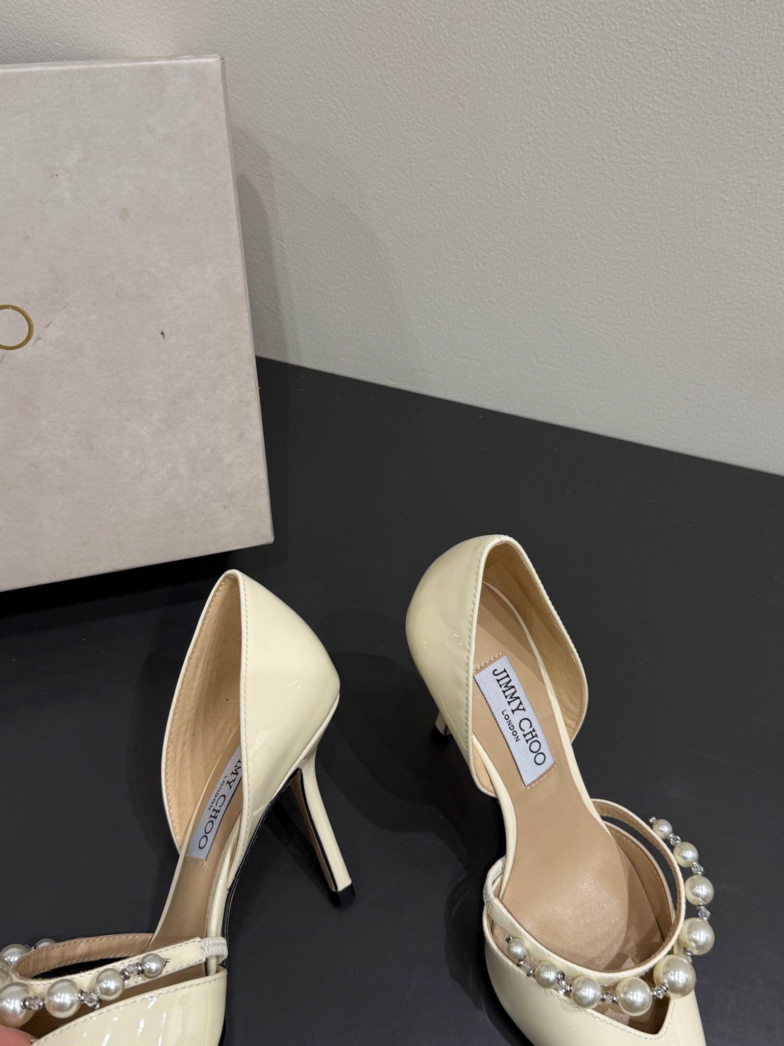 Jimmy Aureli Pearl-embellished Pumps 65mm White Patent Leather 420137