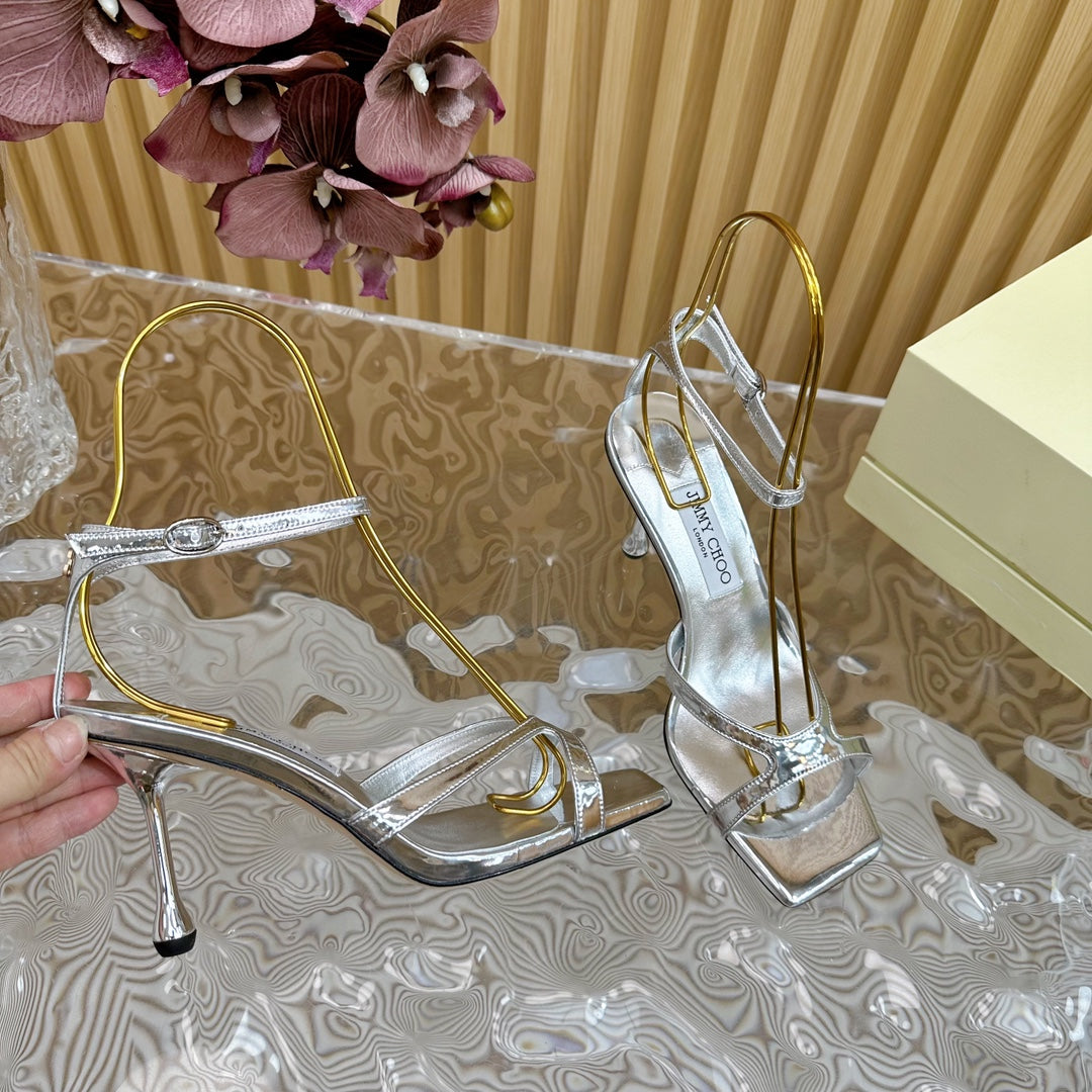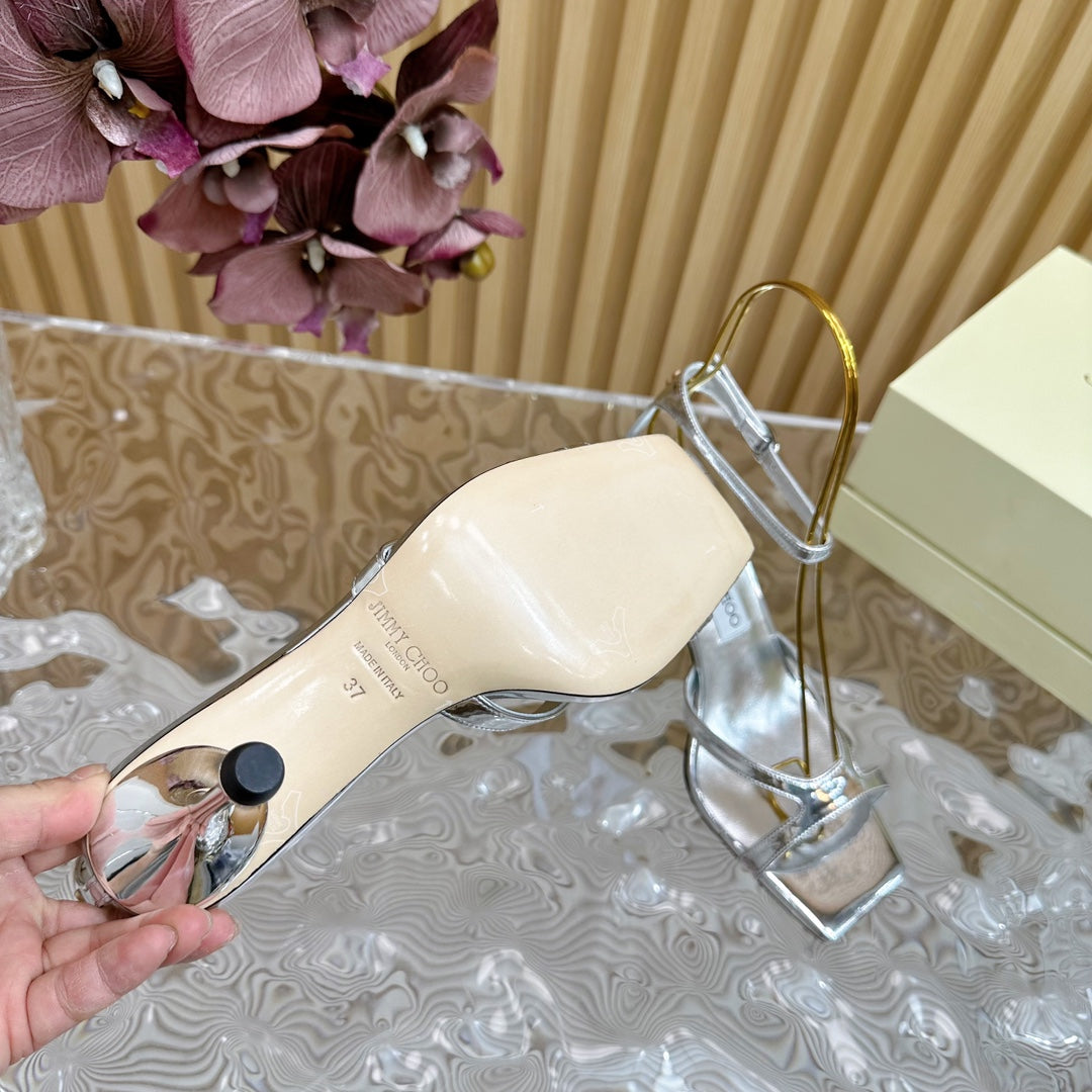 Jimmy Azie 85 In Silver Cowhide Sandals 581515