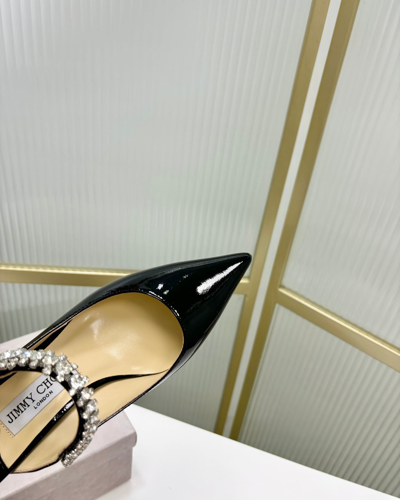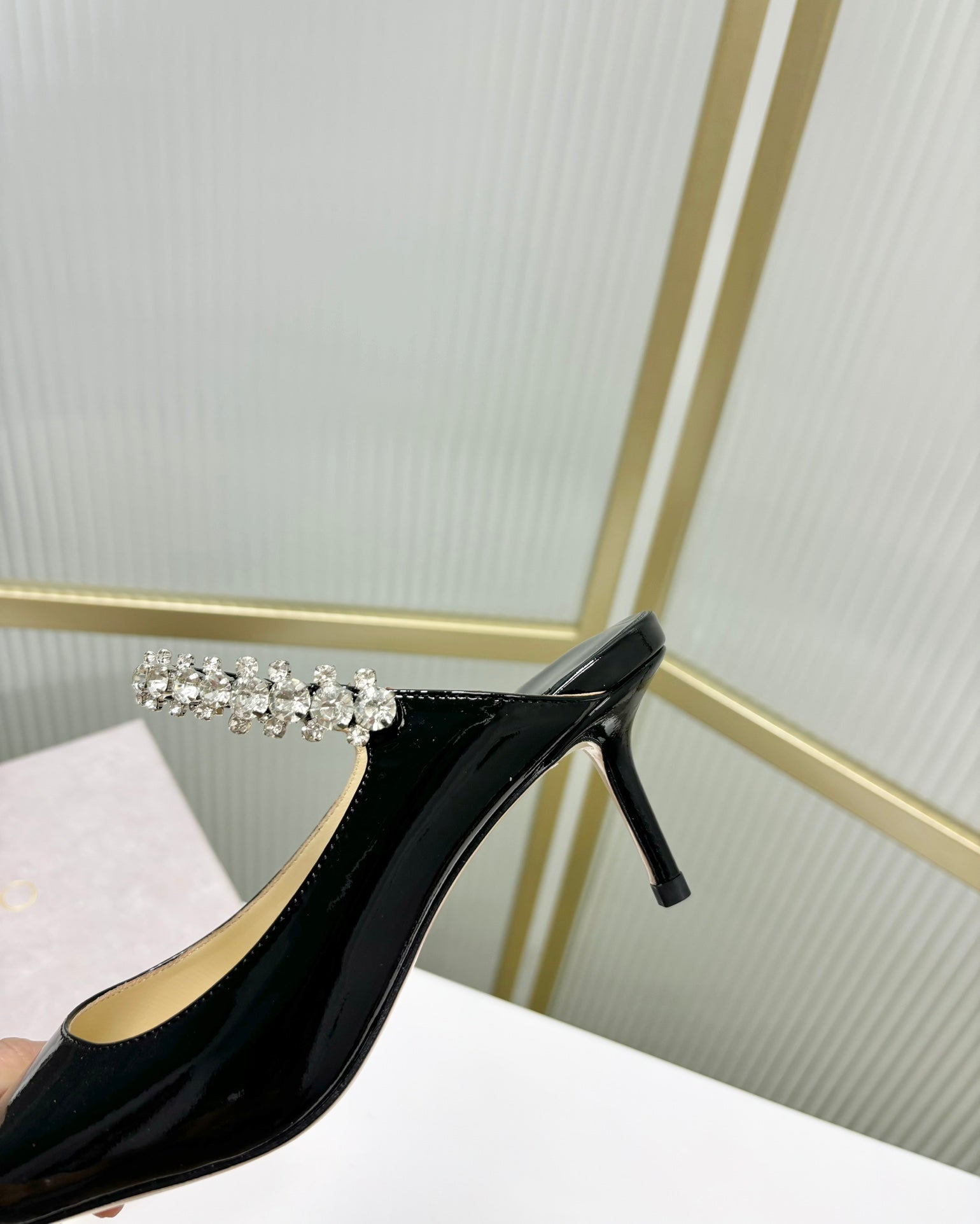 - Material: Glossy Cowhide With Rhinestone