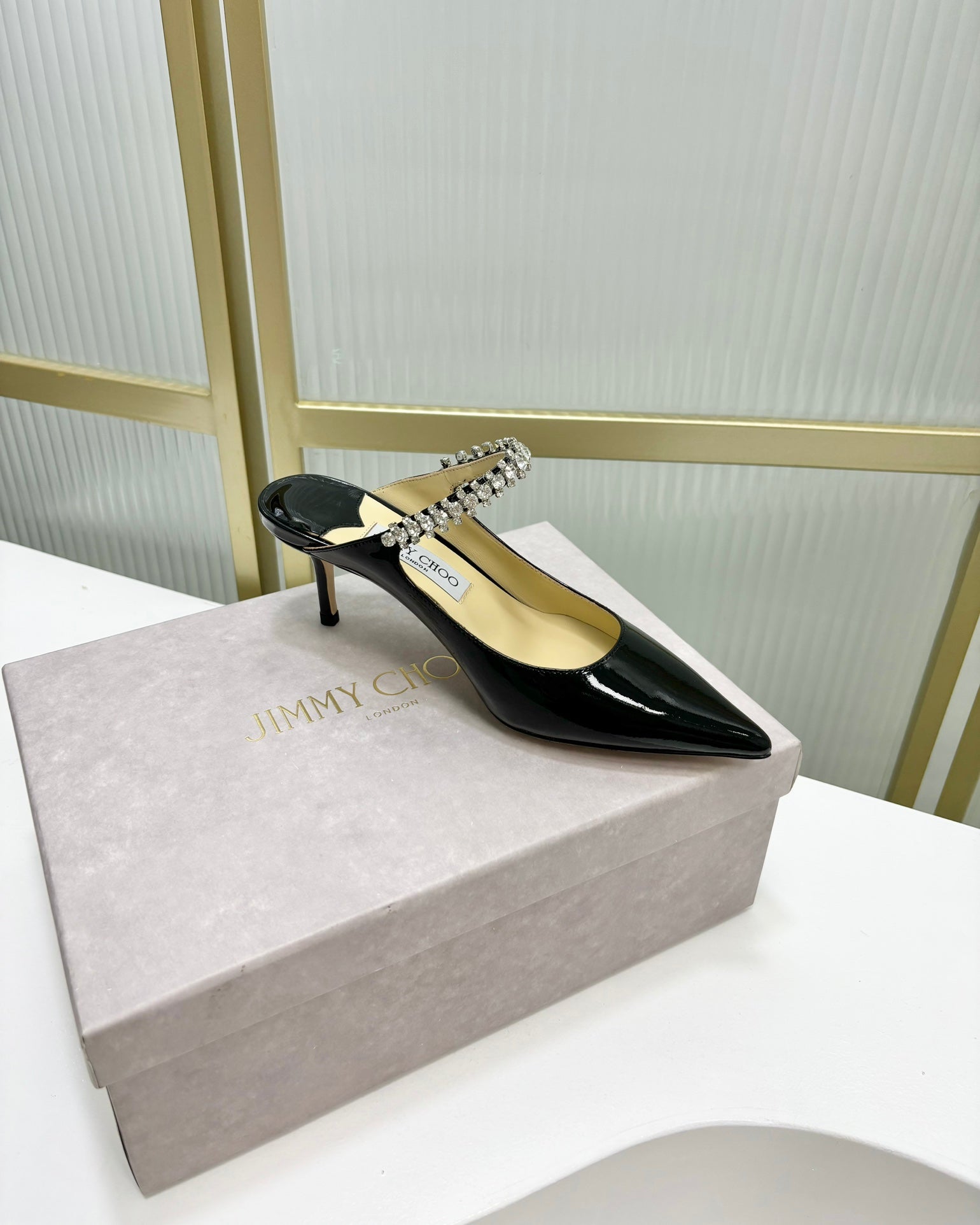 Jimmy Bing 65mm In Black Glossy Cowhide Mules 587758