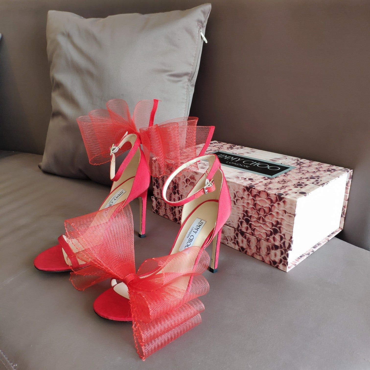 Jimmy Choo 100mm Bow Sandal Red Mesh Cowhide