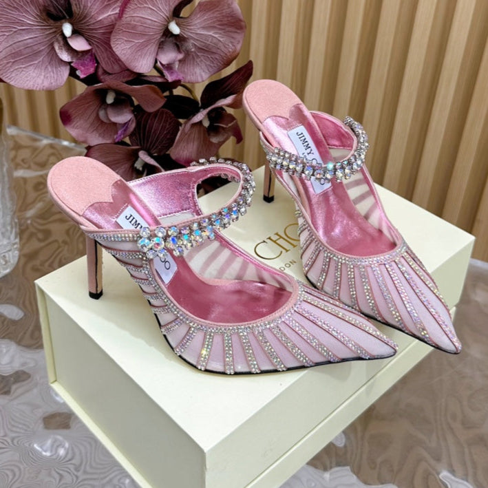 Jimmy Choo 105mm Studded High Heel Pumps Pink Cowhide