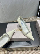Jimmy Choo Belinda 85mm Heels Cream Patent Leather Crystal Studded Heels 540680