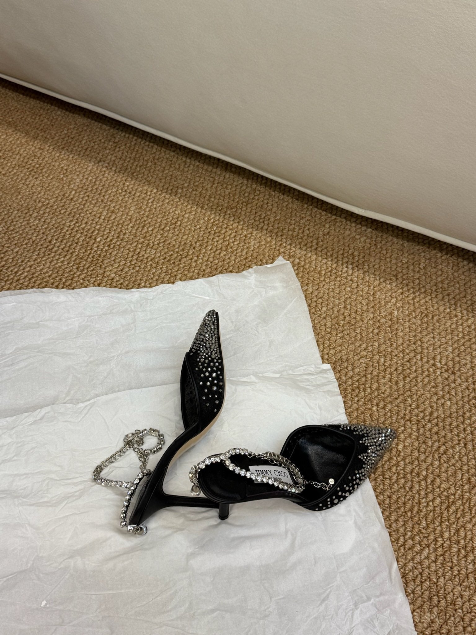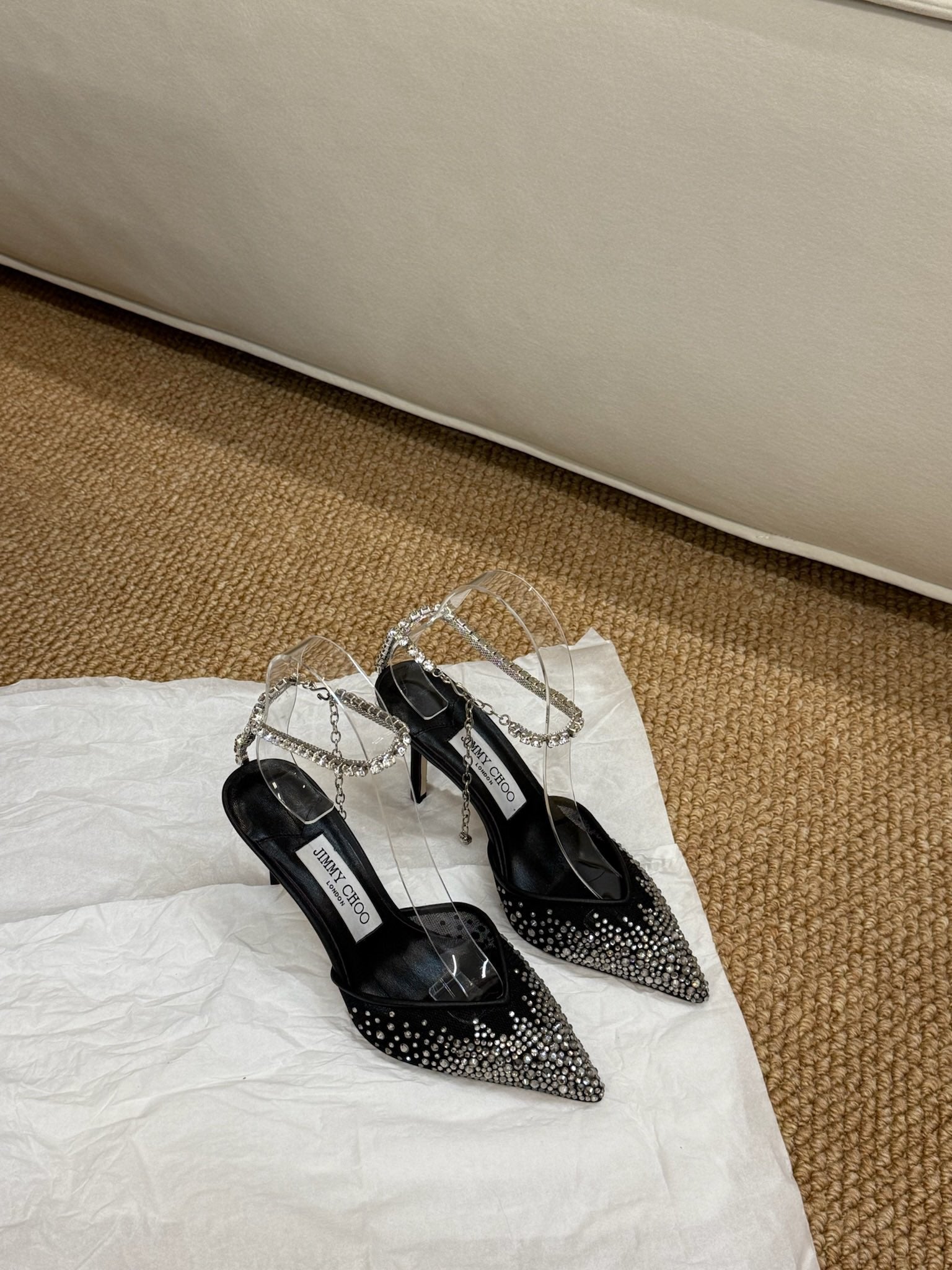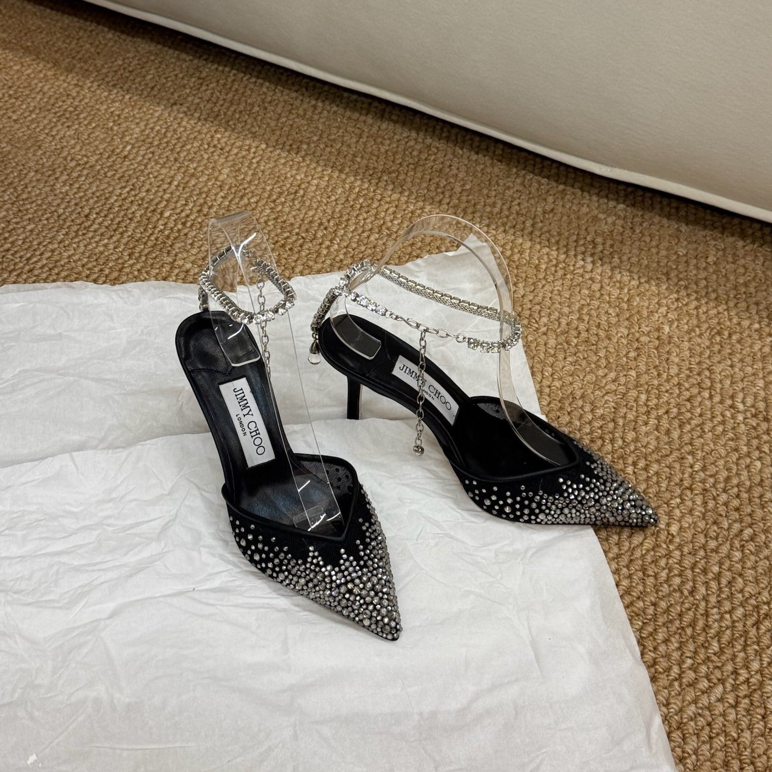 Jimmy Crystal-embellished Saeda Pumps 100mm Black Mesh Drill 420169