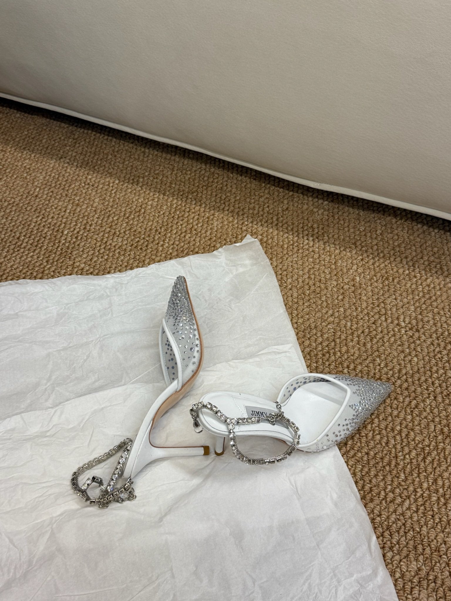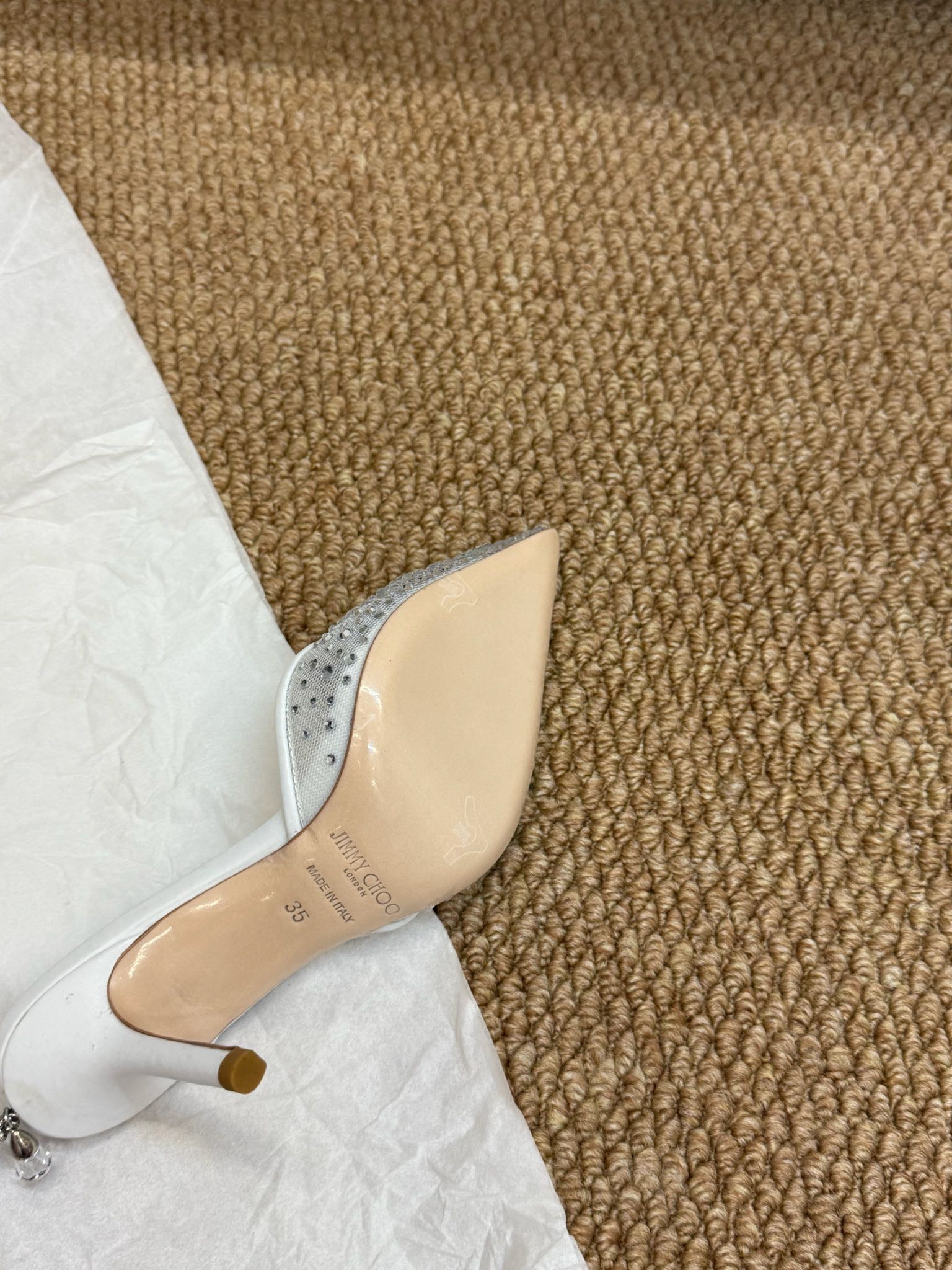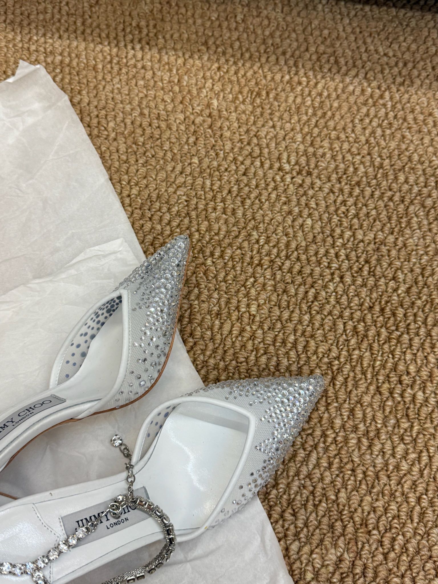 Jimmy Crystal-embellished Saeda Pumps 100mm White Mesh Drill 420170