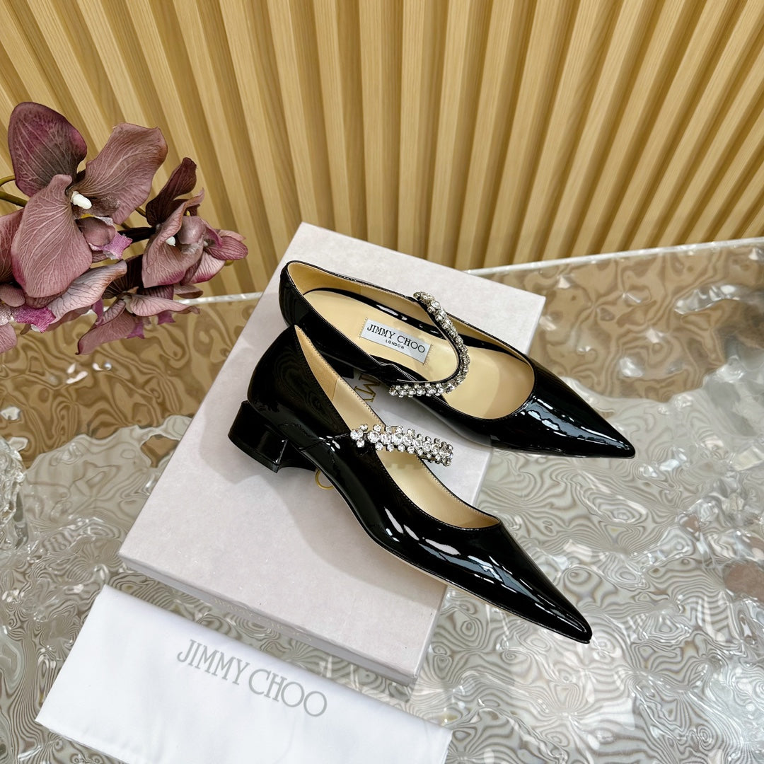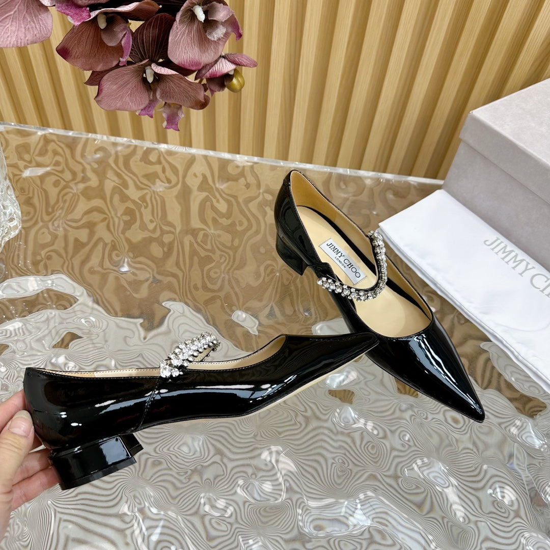 Jimmy Crystal-Strap Ballerina Shoes In Black Glossy Cowhide 641044