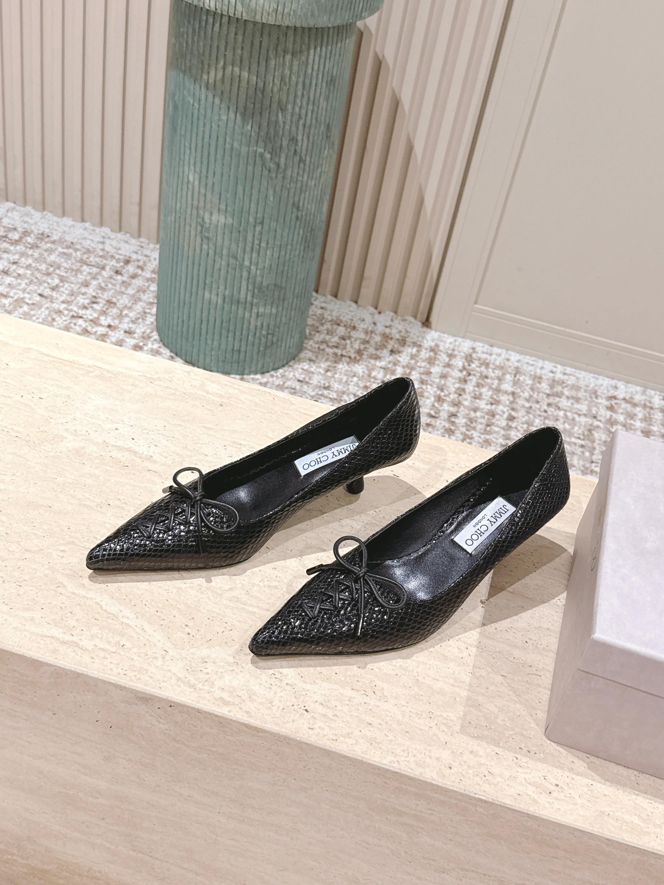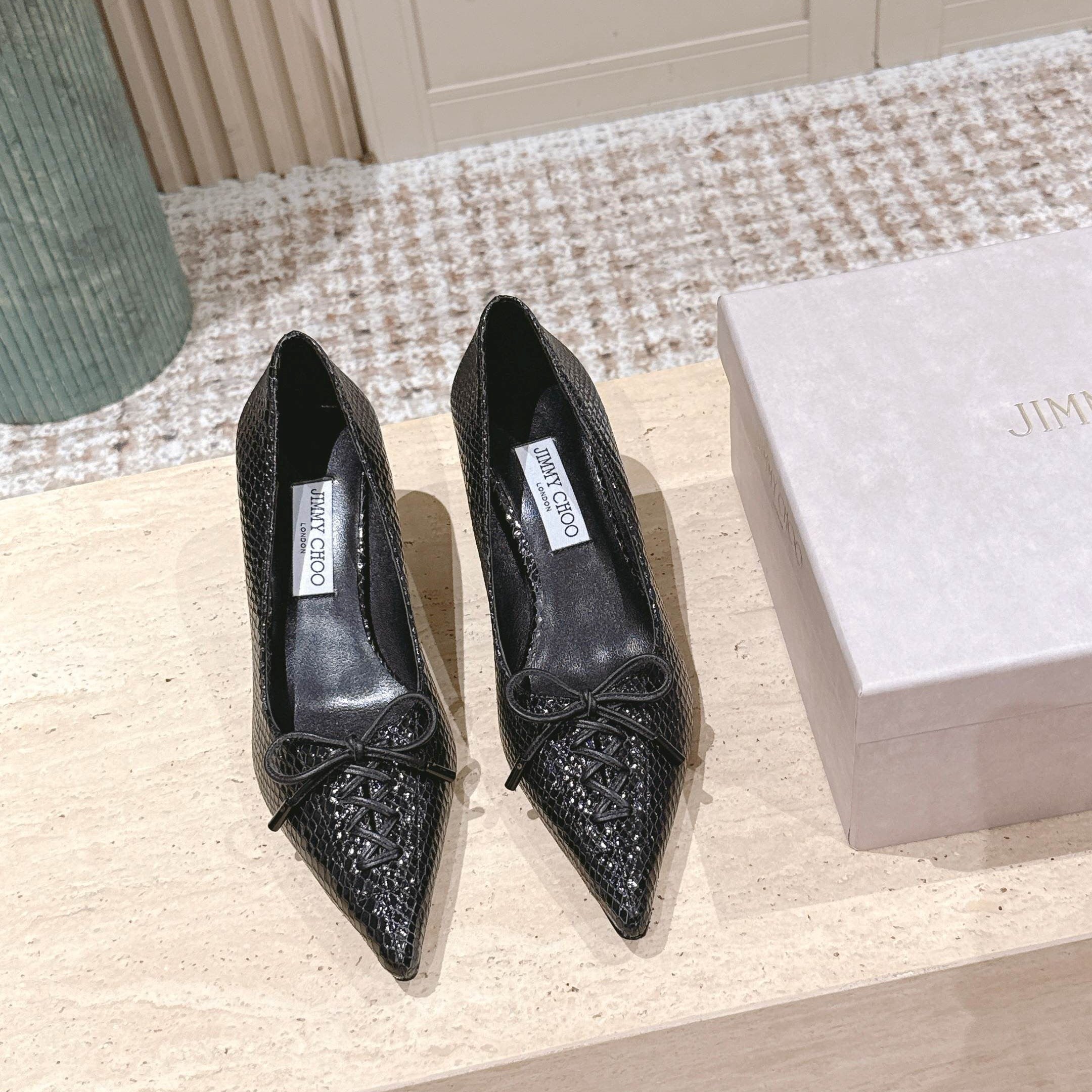 Jimmy Scarlett Snake Embossed Pumps 50mm Black Cowhide 431851