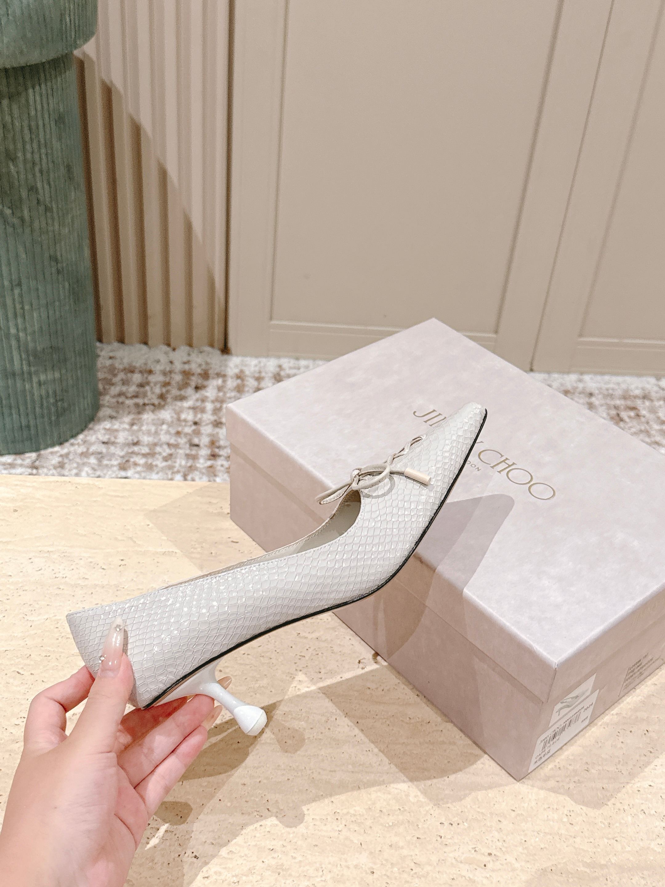 Jimmy Scarlett Snake Embossed Pumps 50mm White Cowhide 431852