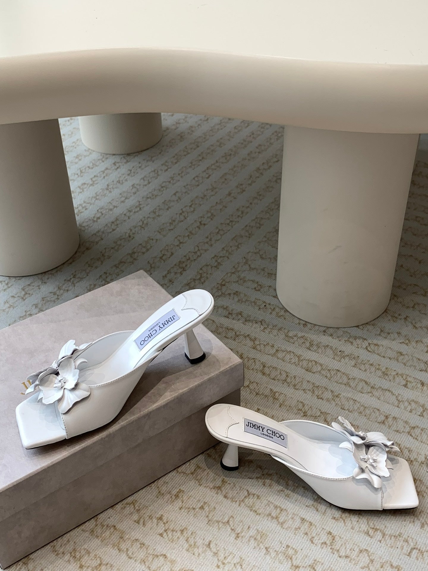 Jimmy Skye 70mm In White Cowhide Mules 586564