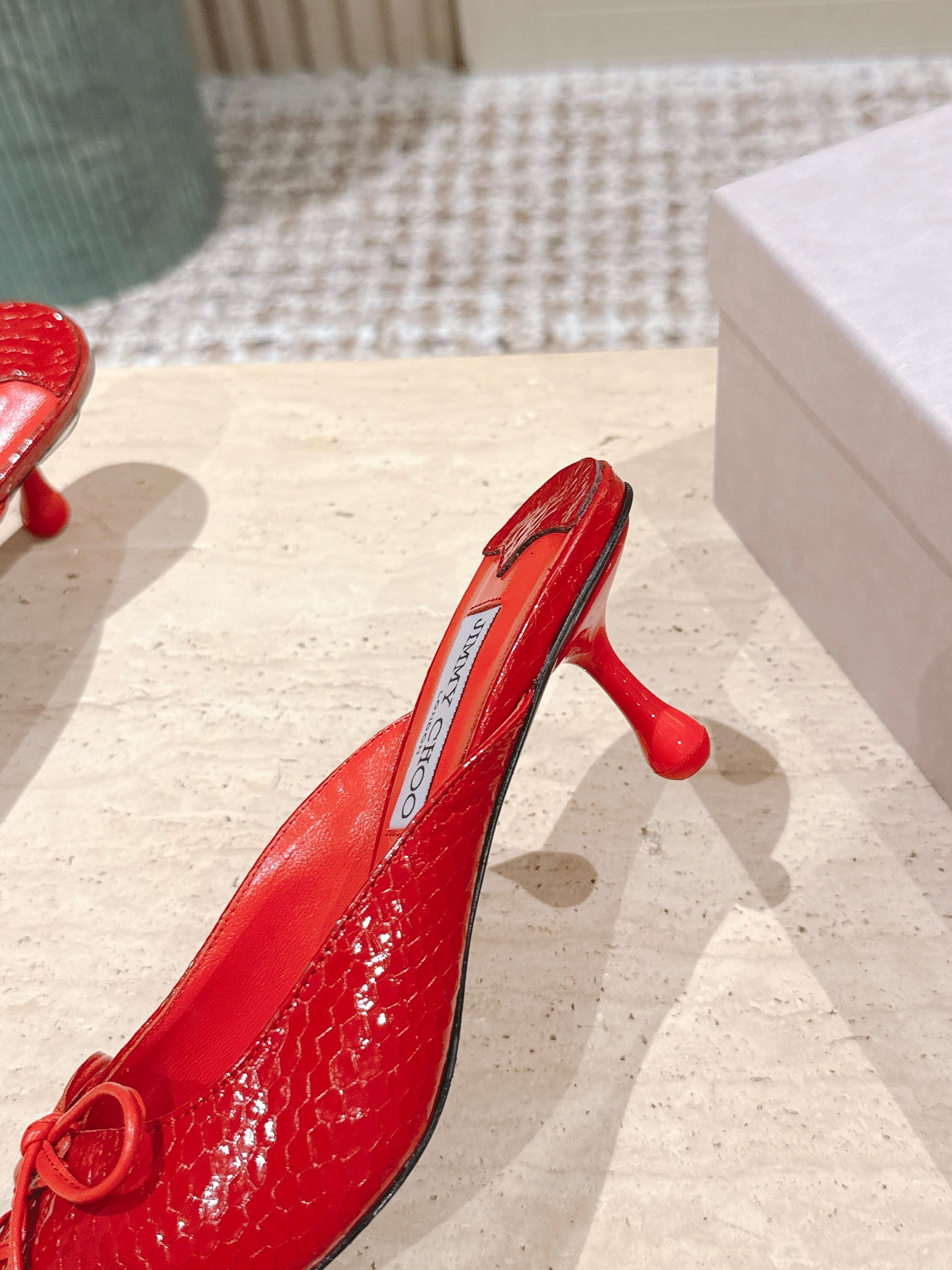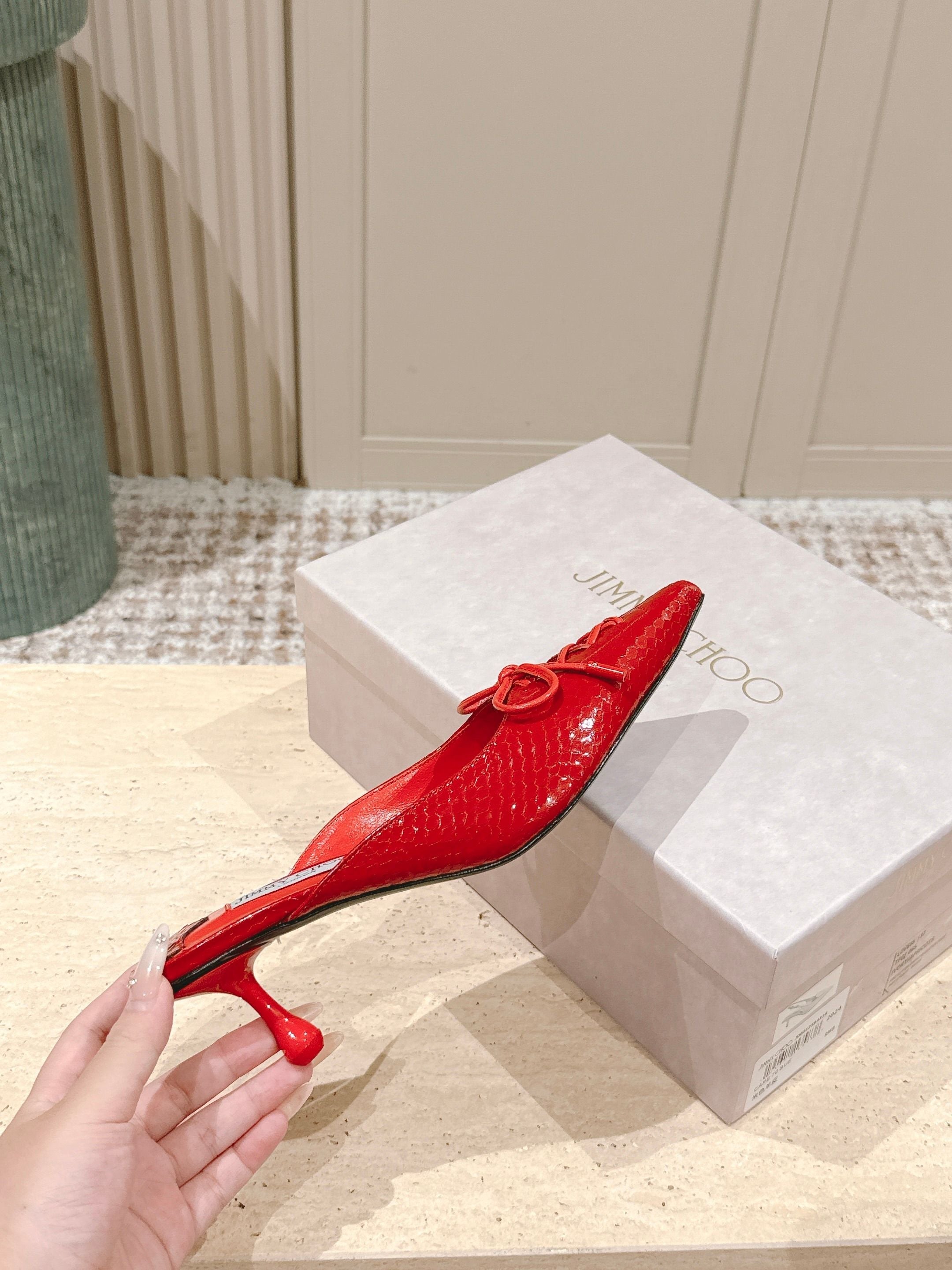 Jimmy Snake Embossed Scarlett Mule 50mm Bright Red Cowhide 431845
