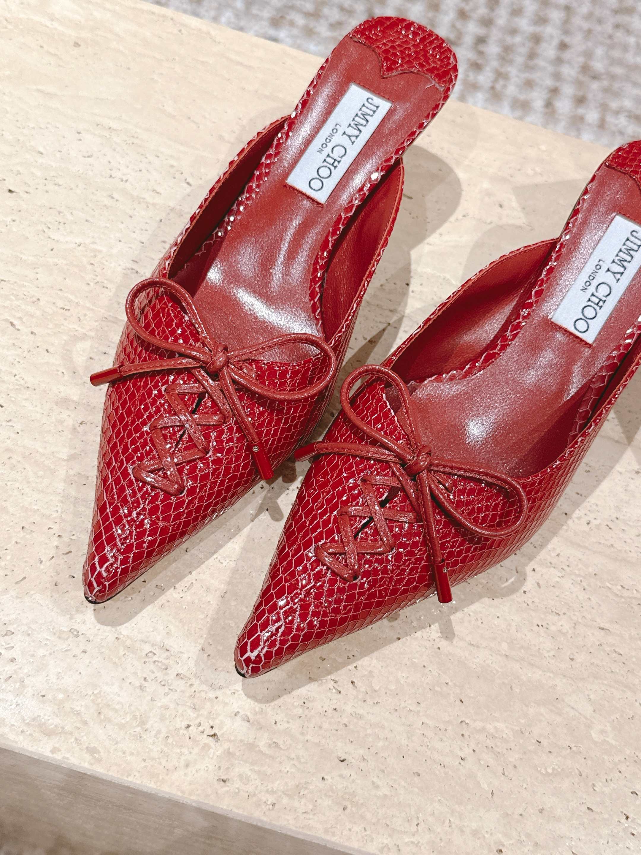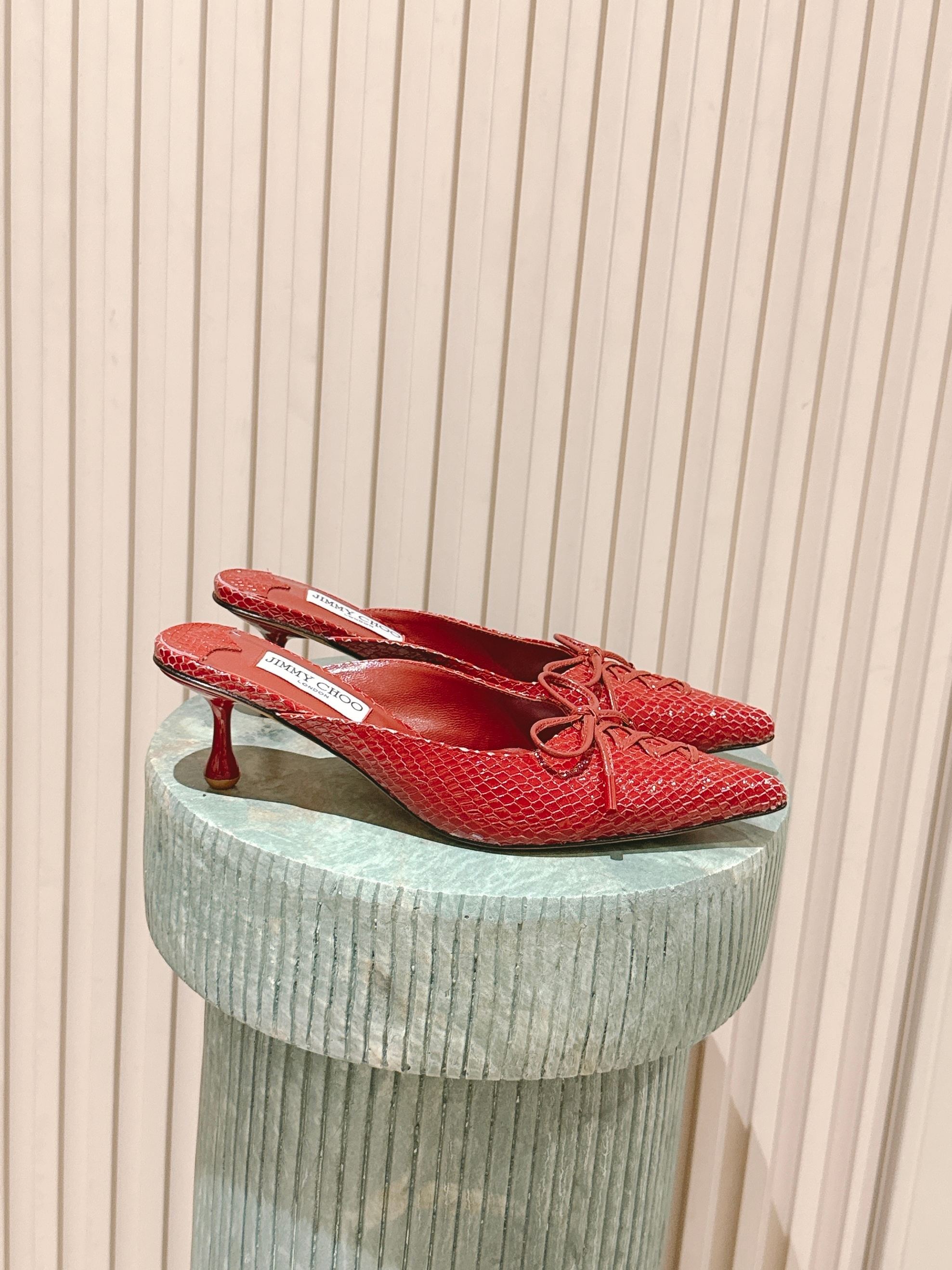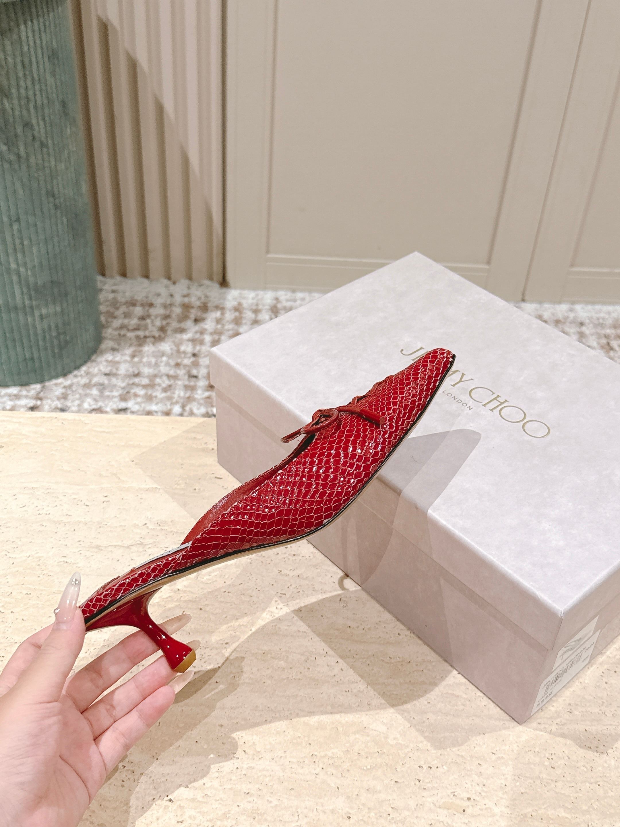 Jimmy Snake Embossed Scarlett Mule 50mm Red Cowhide 431848