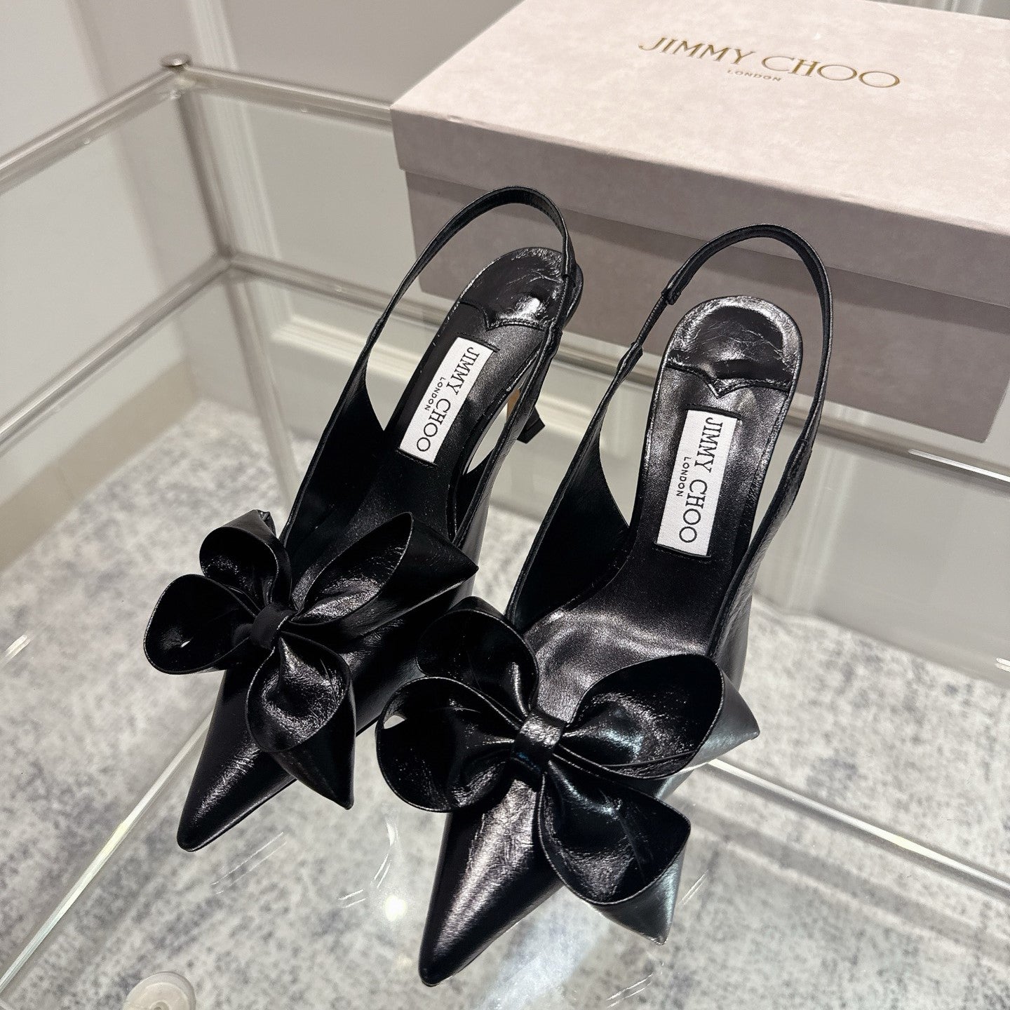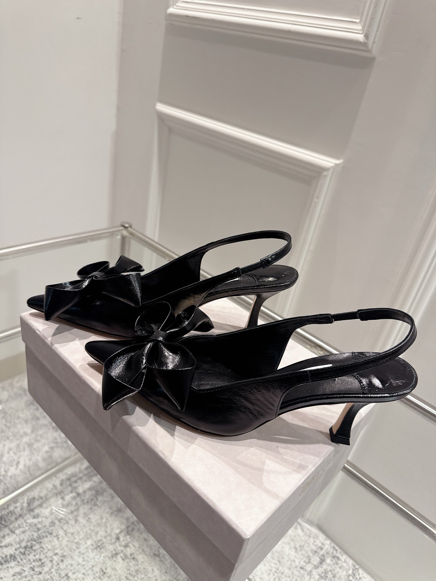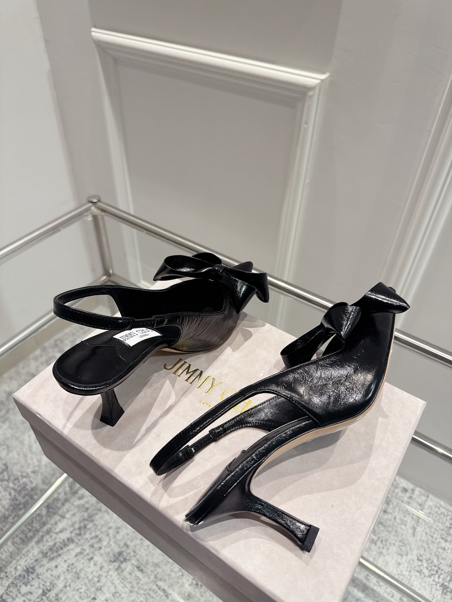 Jimmy Staz Slingback 70mm Black Sheepskin 422442