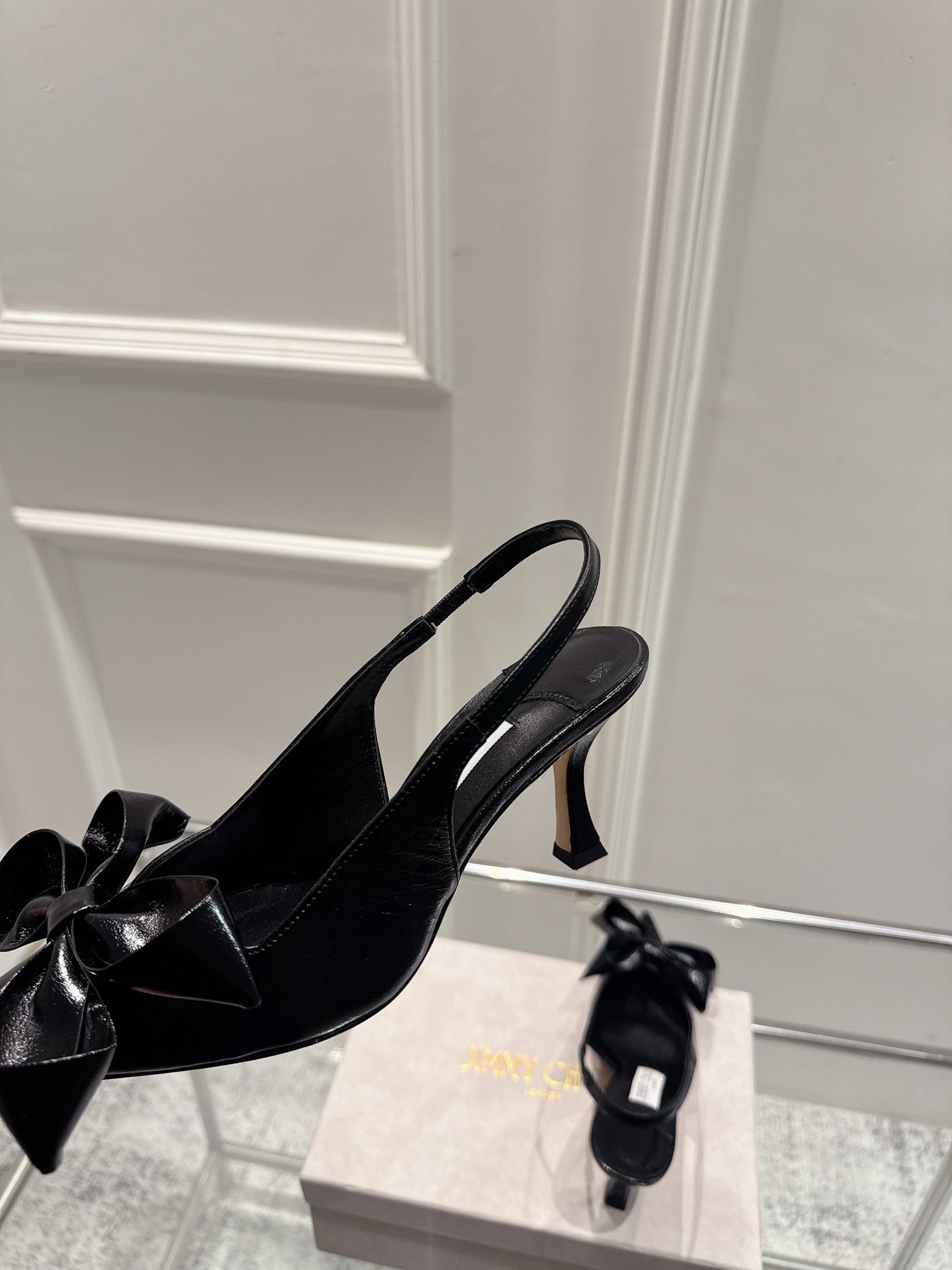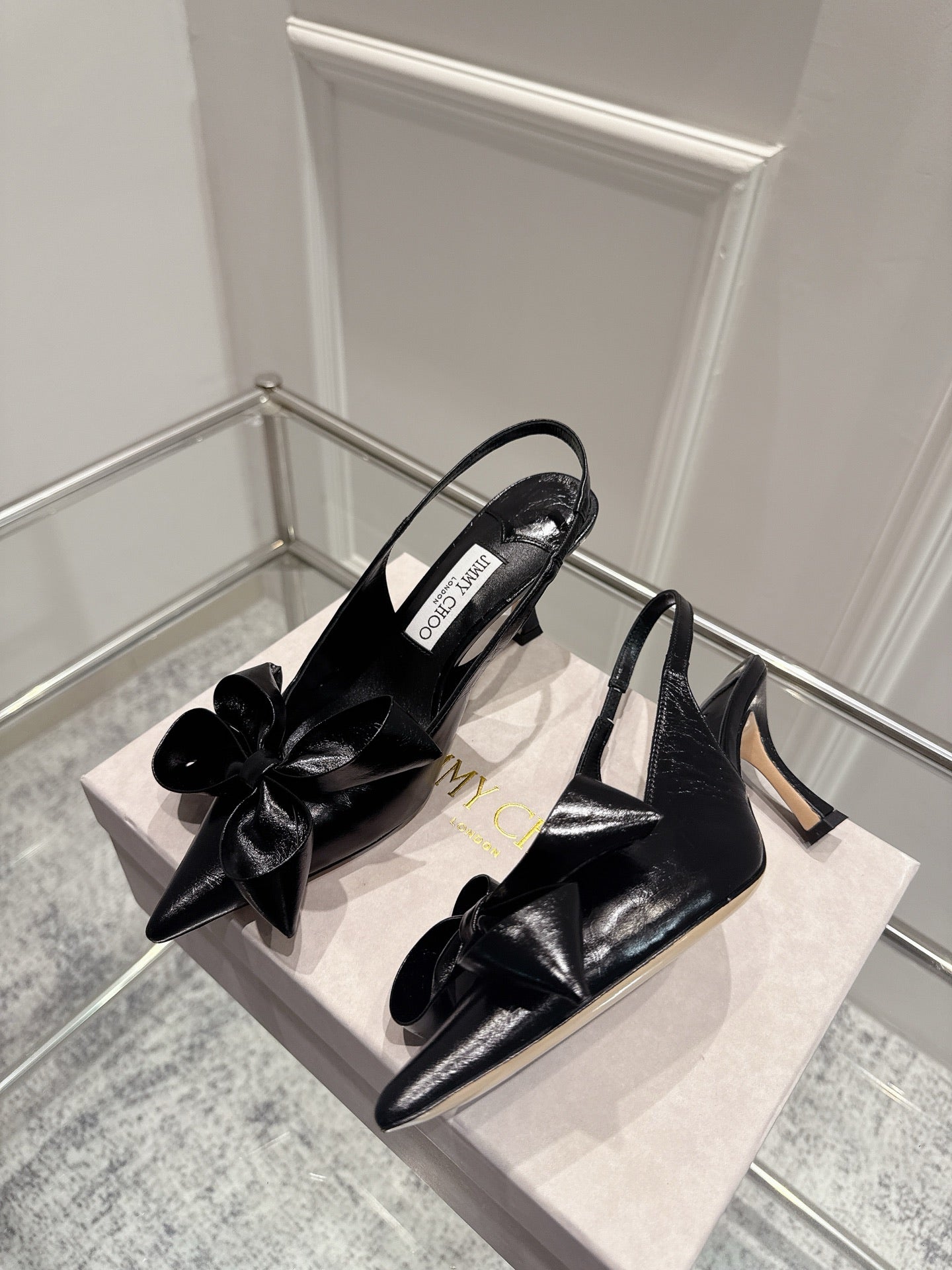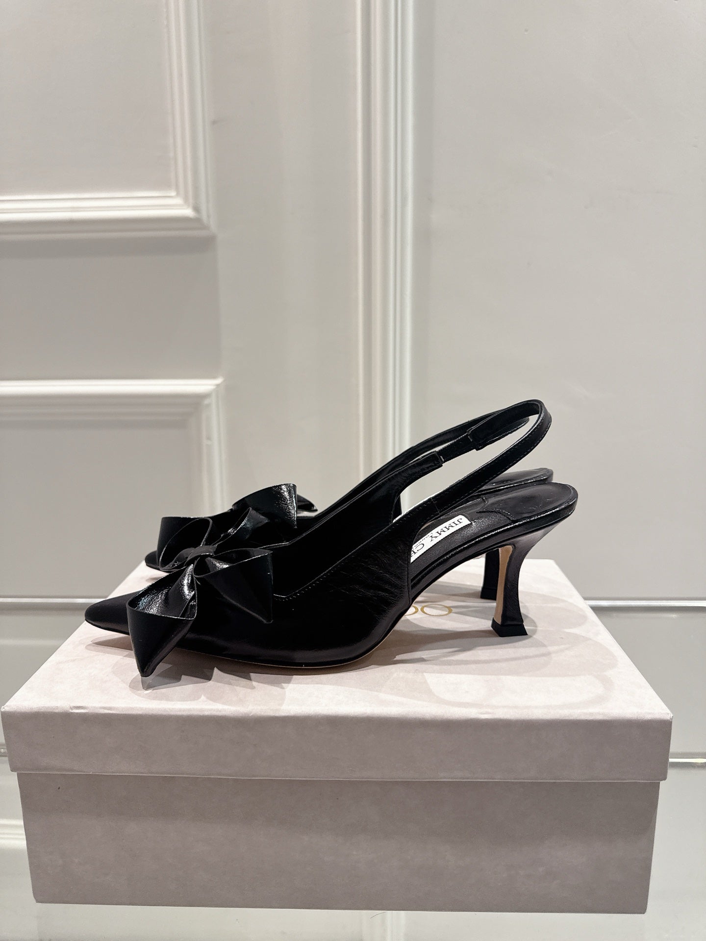 Jimmy Staz Slingback 70mm Black Sheepskin 422442