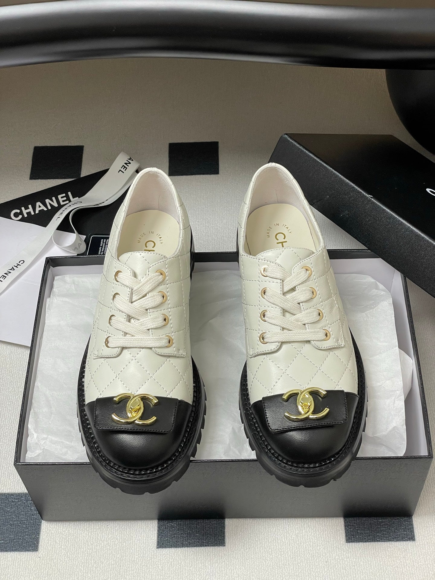 25K Double C Buckle Thick-Soled 25mm Loafer White Black Lambskin 247710