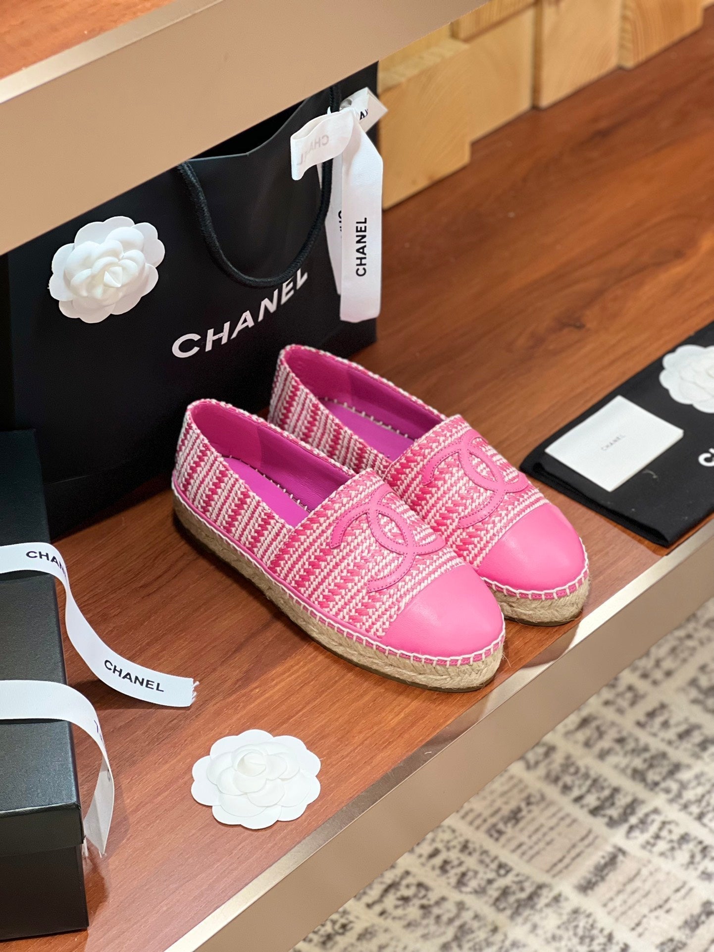 cc espadrilles beige pink woolen cloth pink lambskin