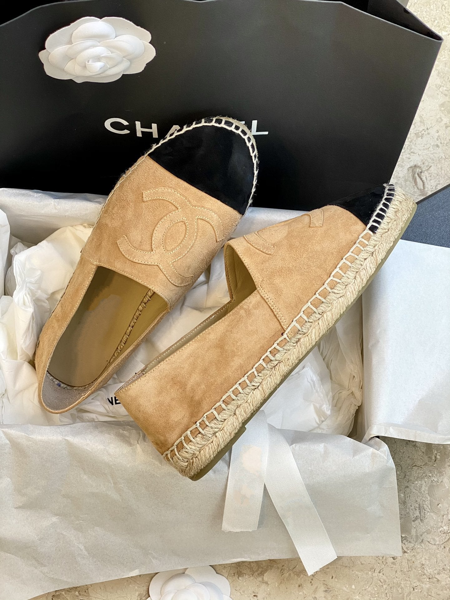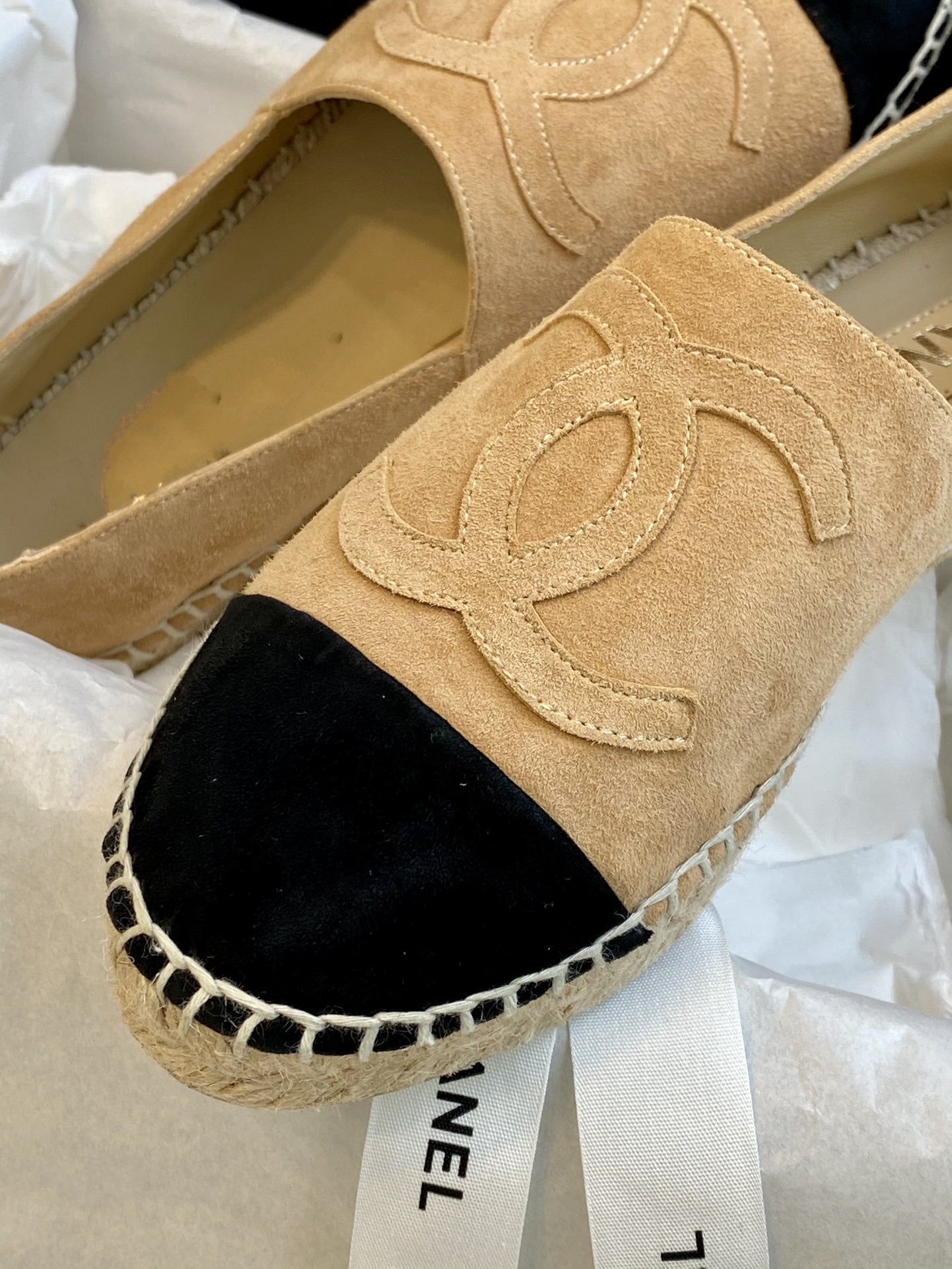 espadrilles beige suede black velvet