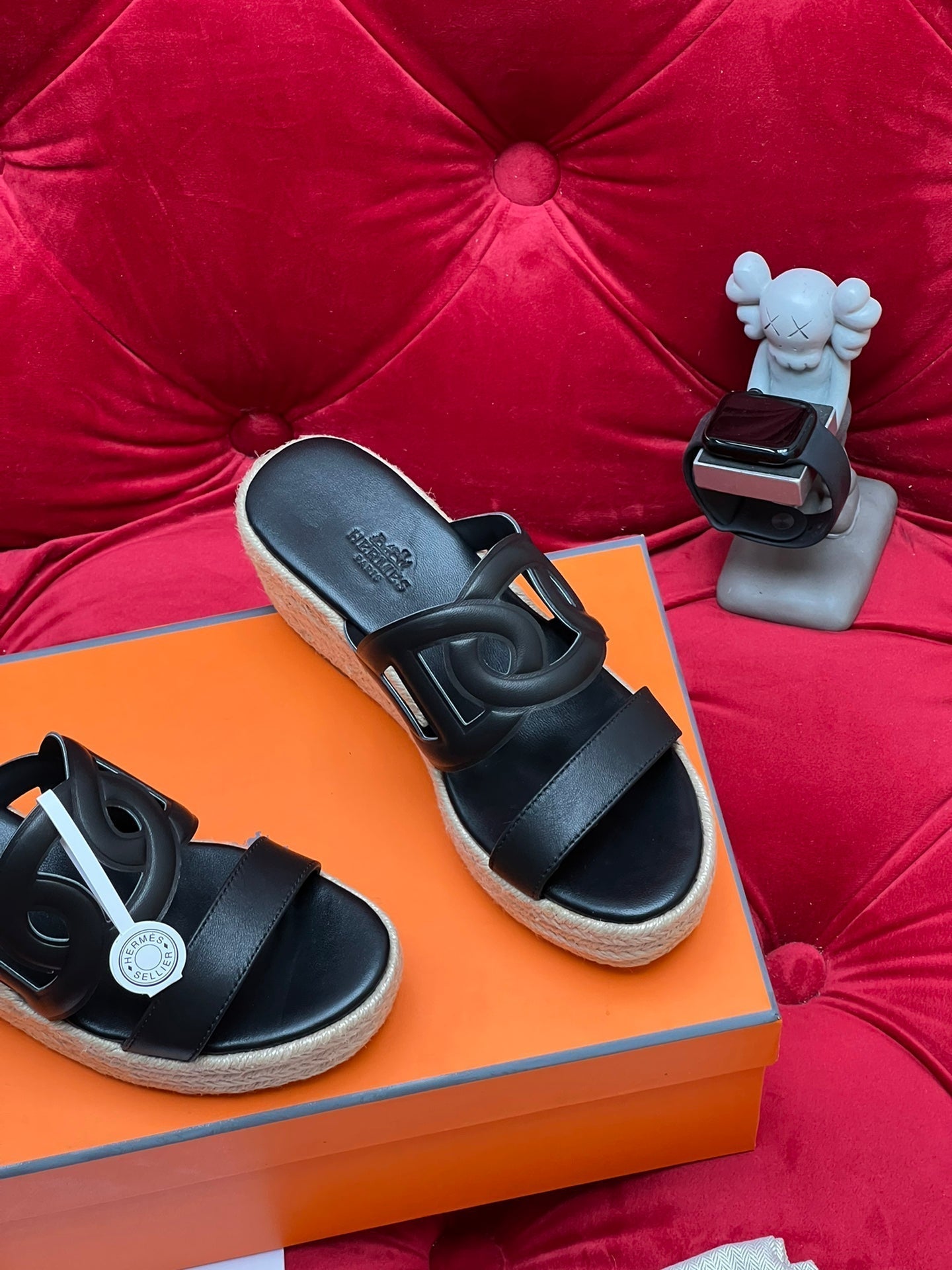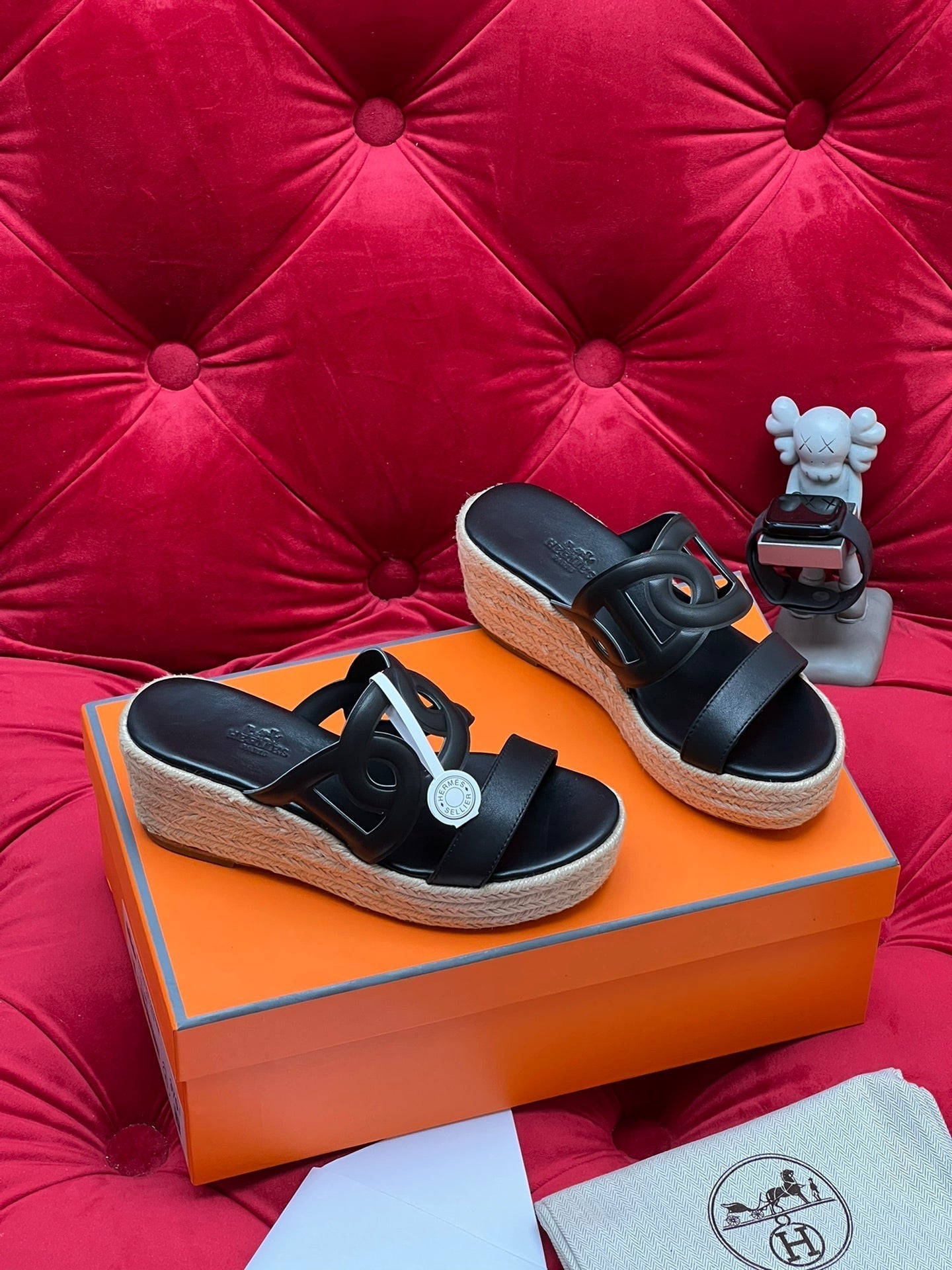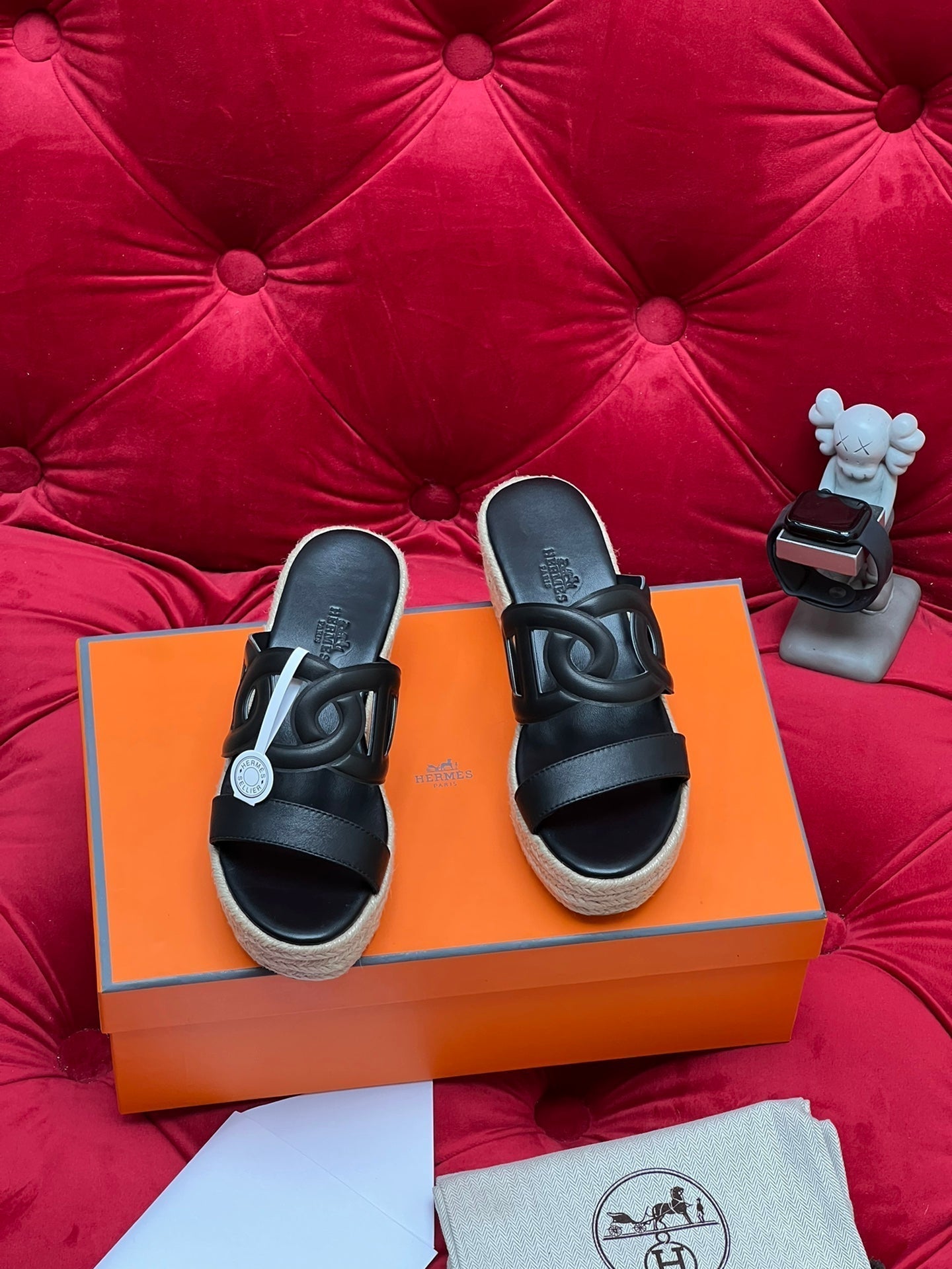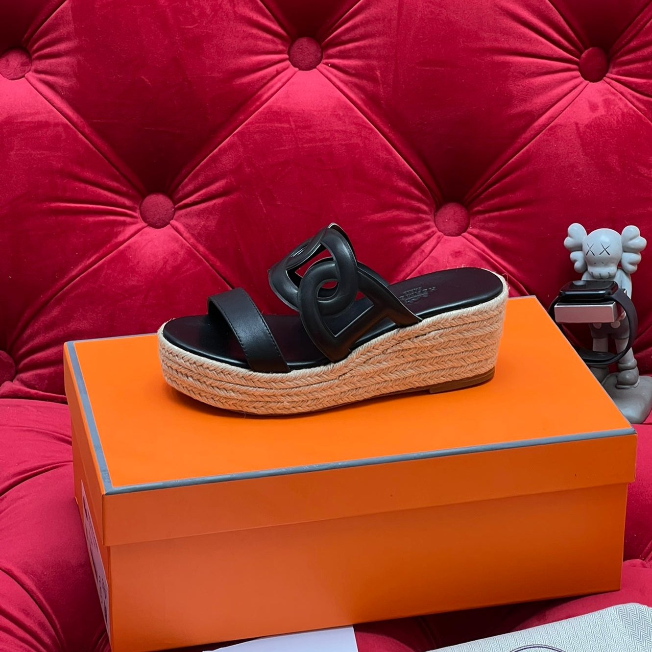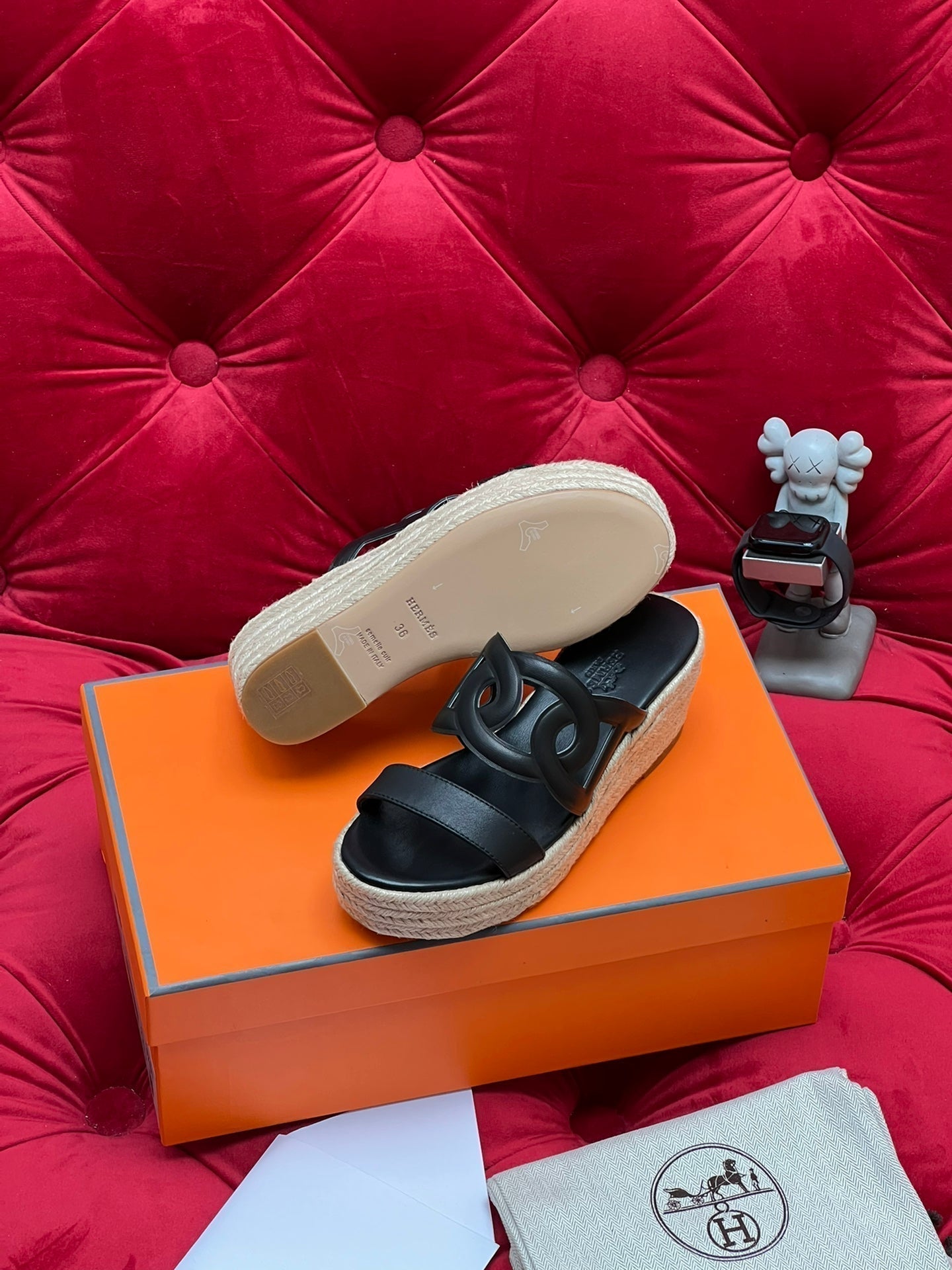 HM Lthea Espadrille Black Calfskin And Jute Rope 969498