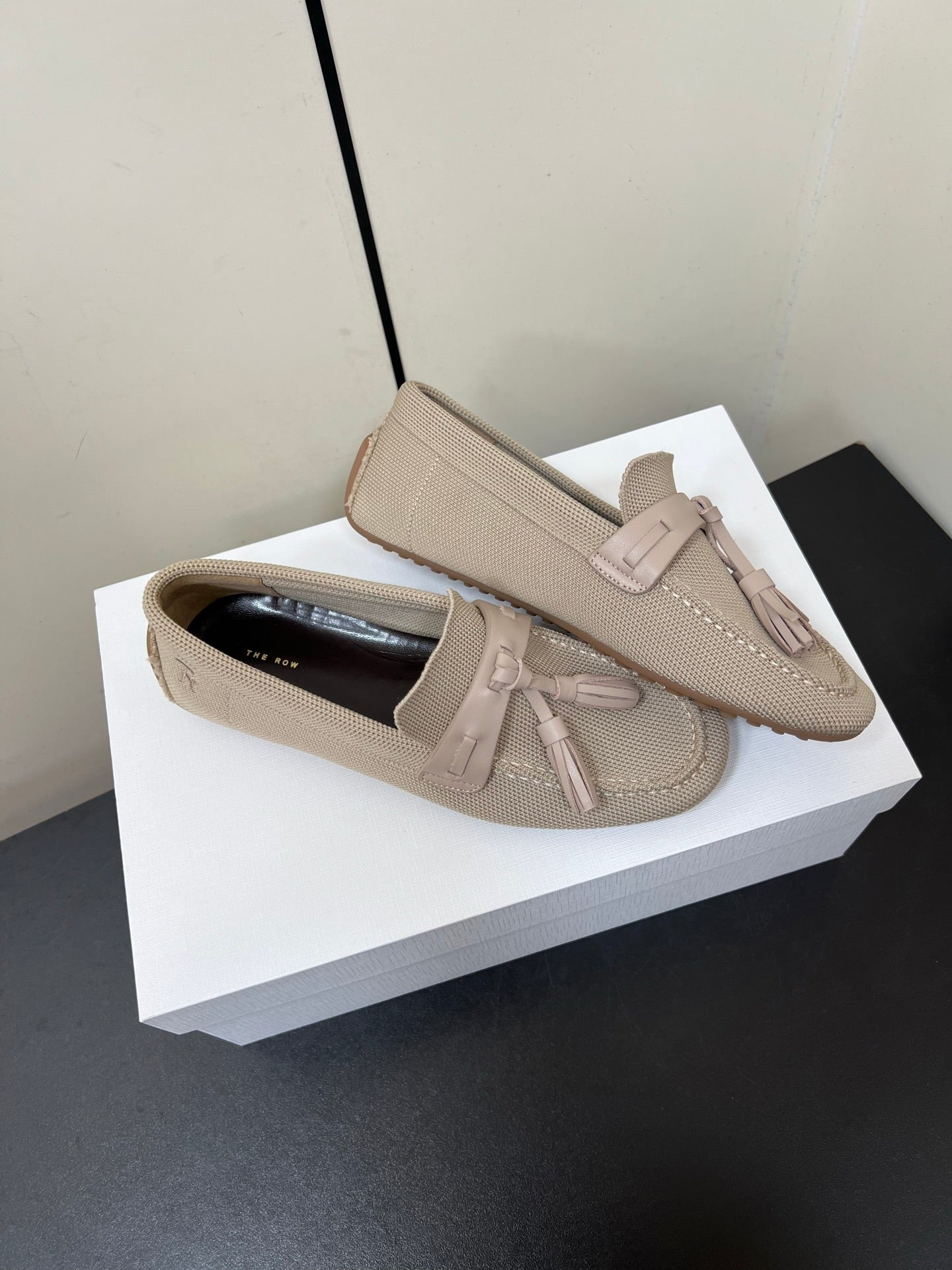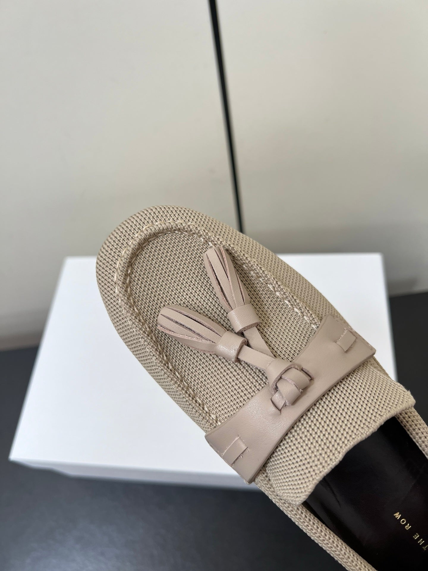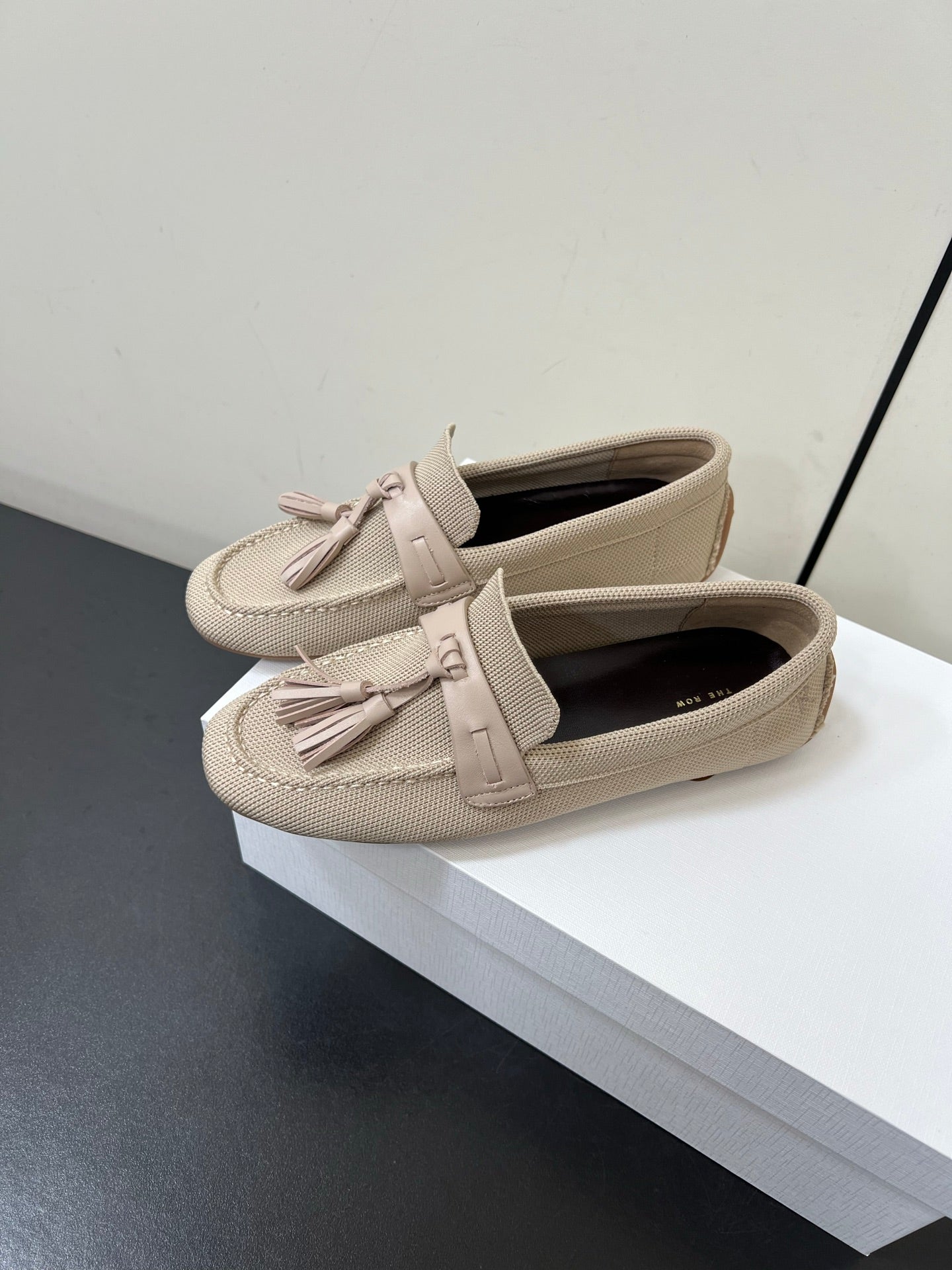 The Row Tassel-Knit Loafer Beige Canvas And Sheepskin 339995