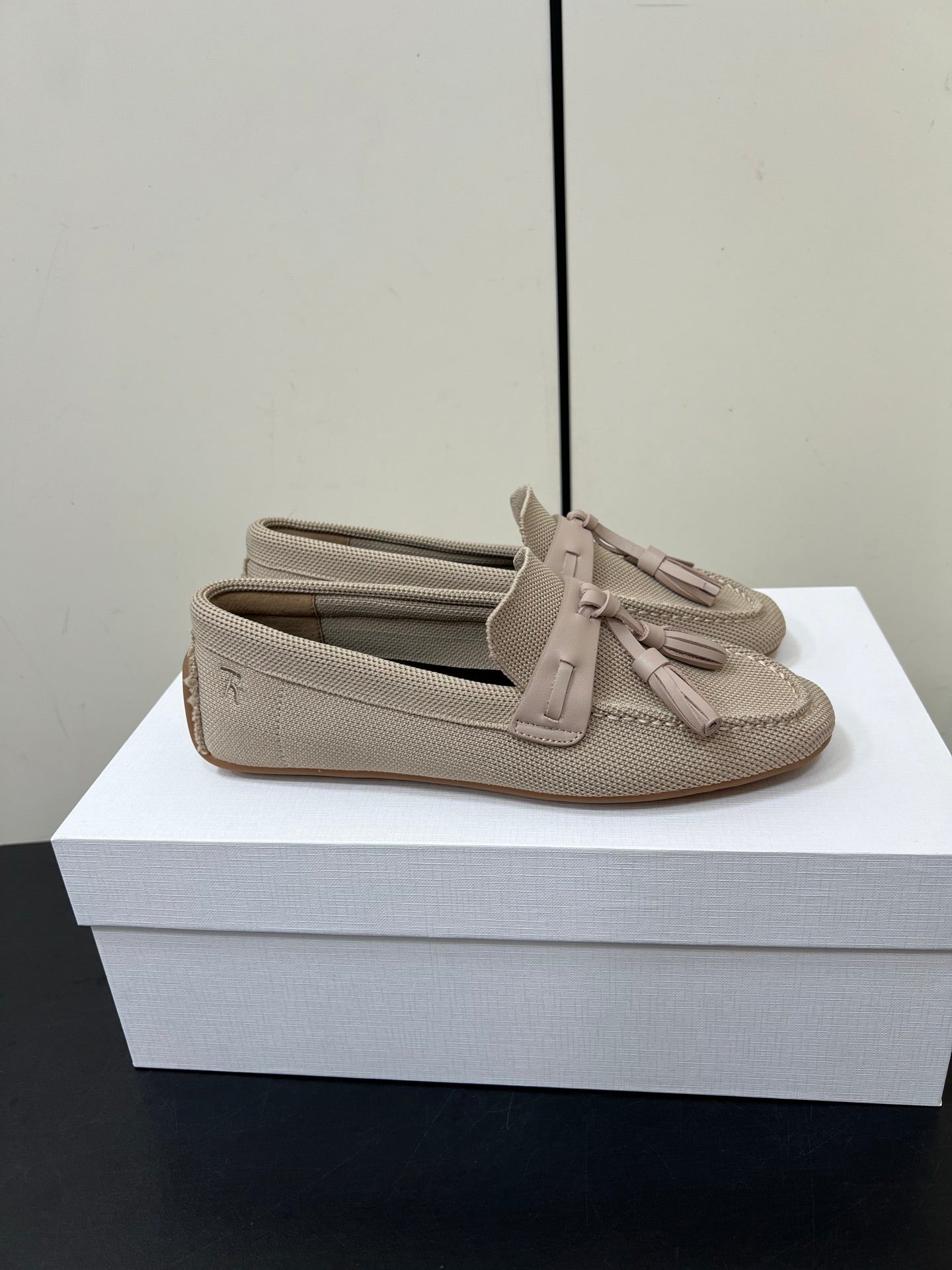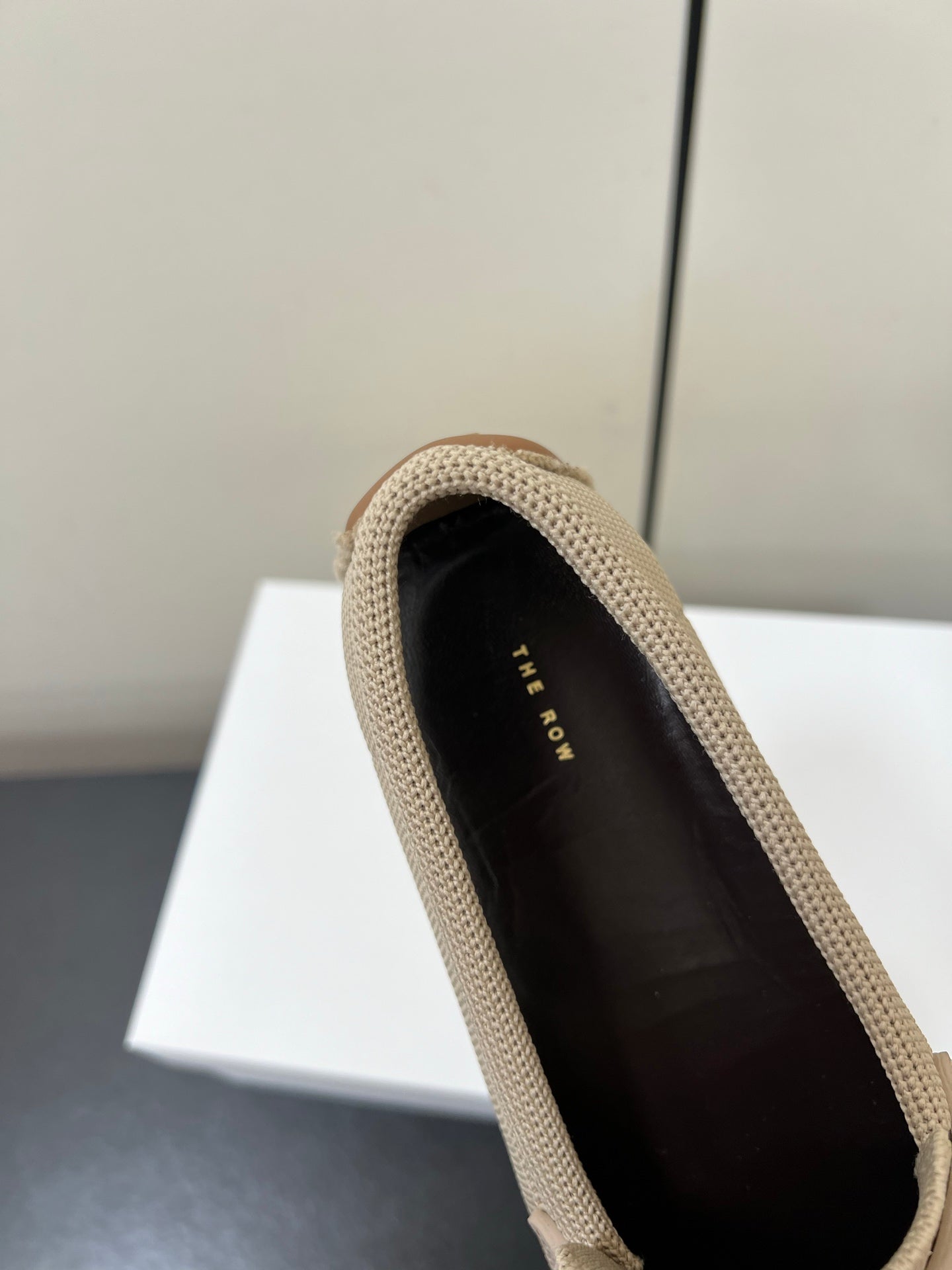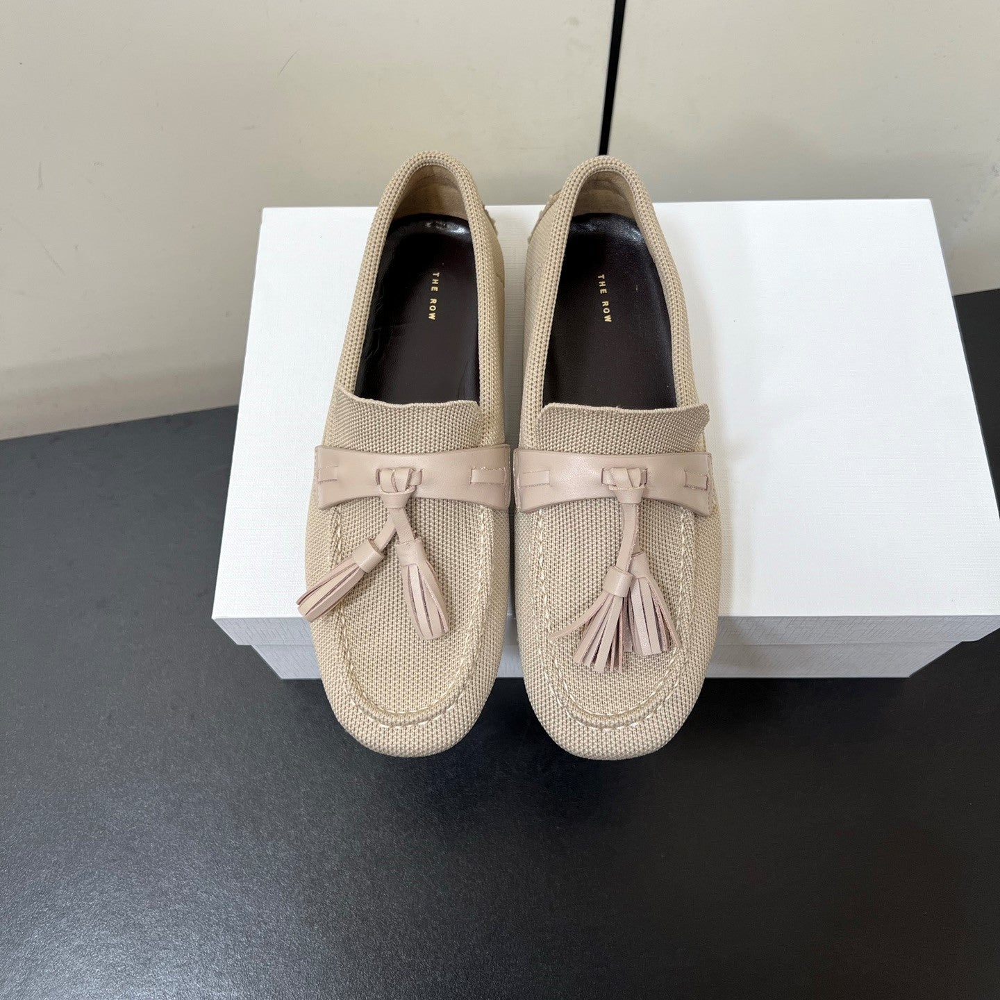 The Row Tassel-Knit Loafer Beige Canvas And Sheepskin 339995