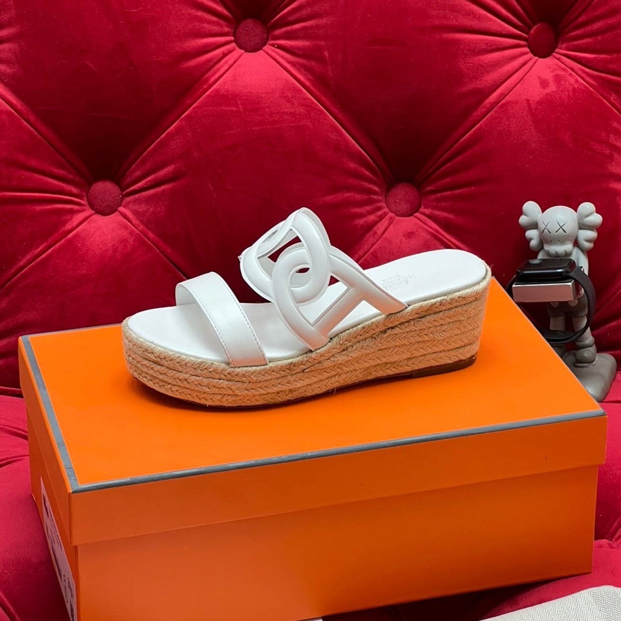 HM Feria Espadrille 20mm White Calfskin And Handwoven Hemp Rope 967989