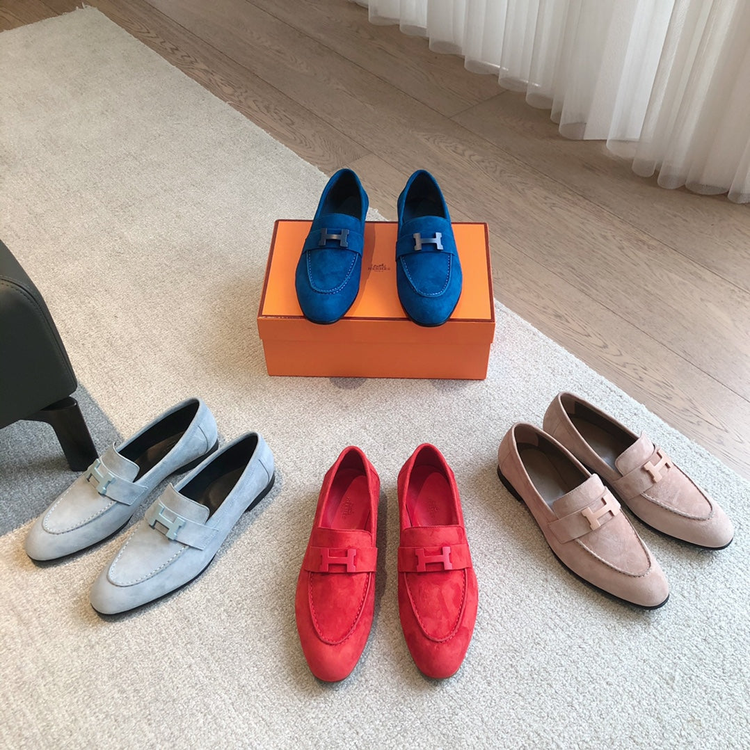 Paris Loafer Peach Suede Calfskin With Signature Buckle 509351