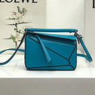 LOE MINI 18 PUZZLE BAG IN BLUE GREEN CALFSKIN