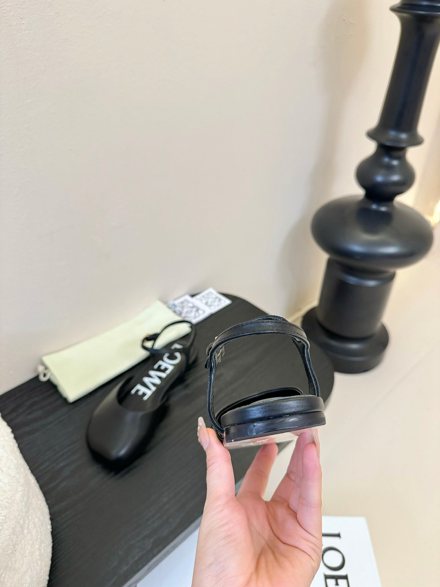 Loewe 25 Toy Ankle Strap Ballet Flat Black Calfskin 309171