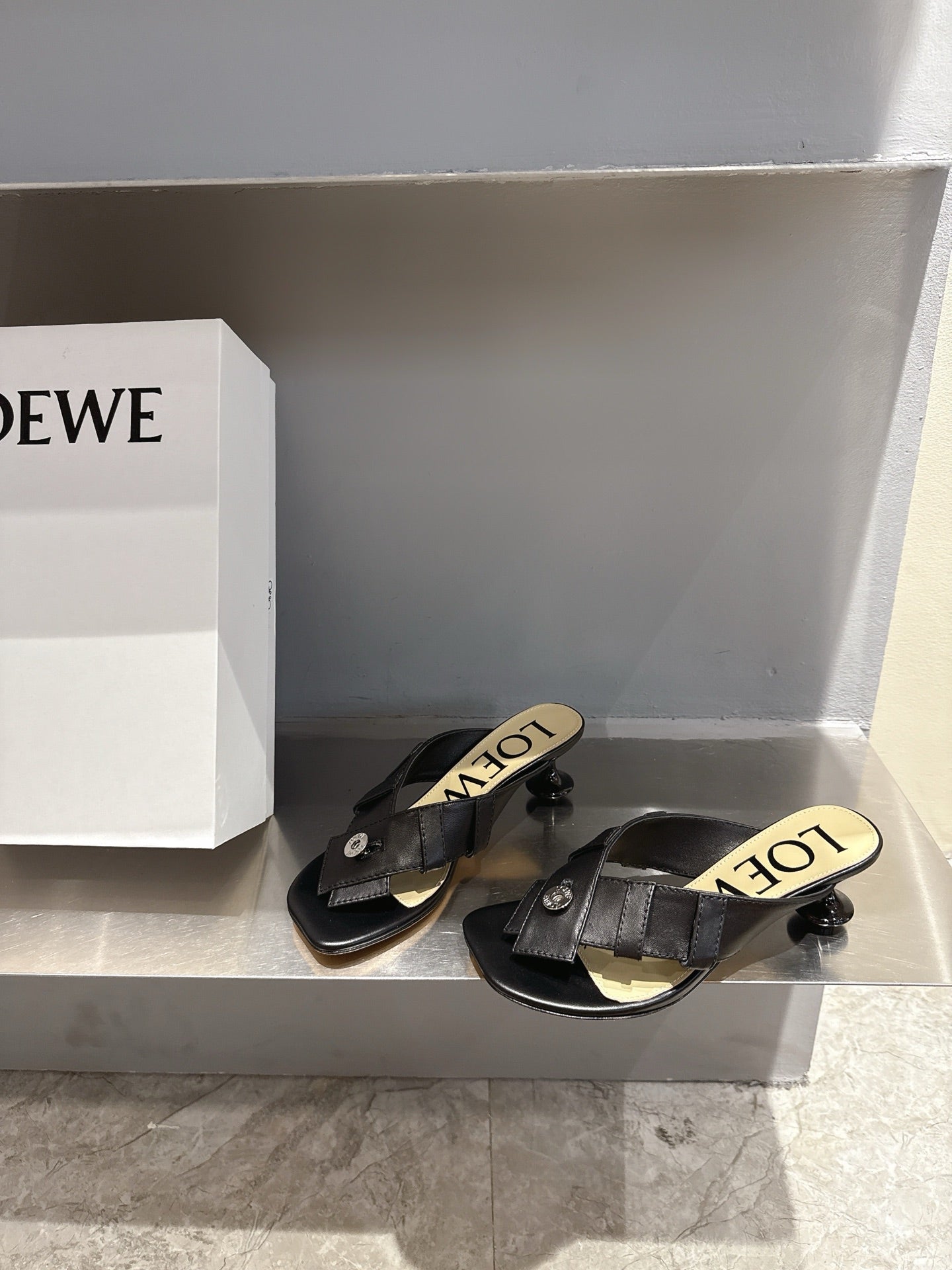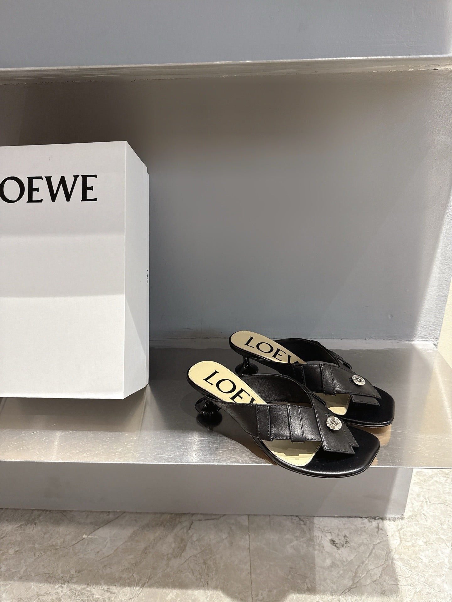 Loewe 25 Toy Panta Toe Thong 5cm Black Sheepskin