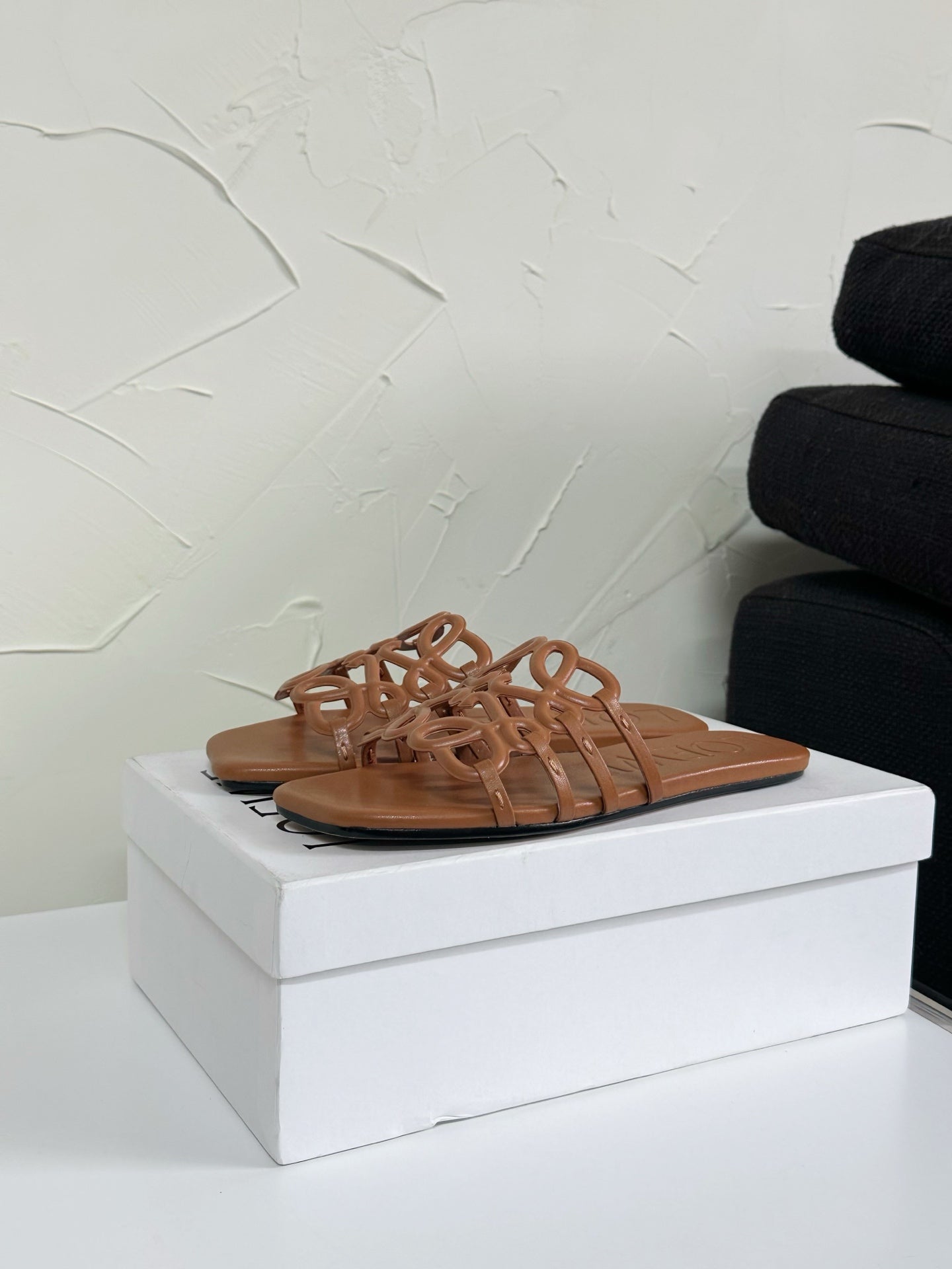 Petal Anagram Slide in Gold Soft Calfskin 273517