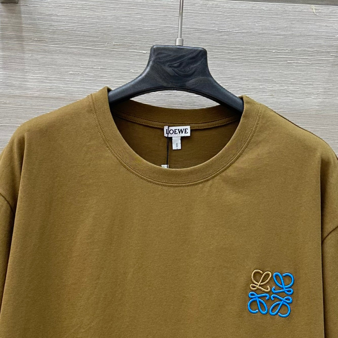 Loewe 25 Floral Embroidered Short-sleeved T-shirt Olive Brown Cotton