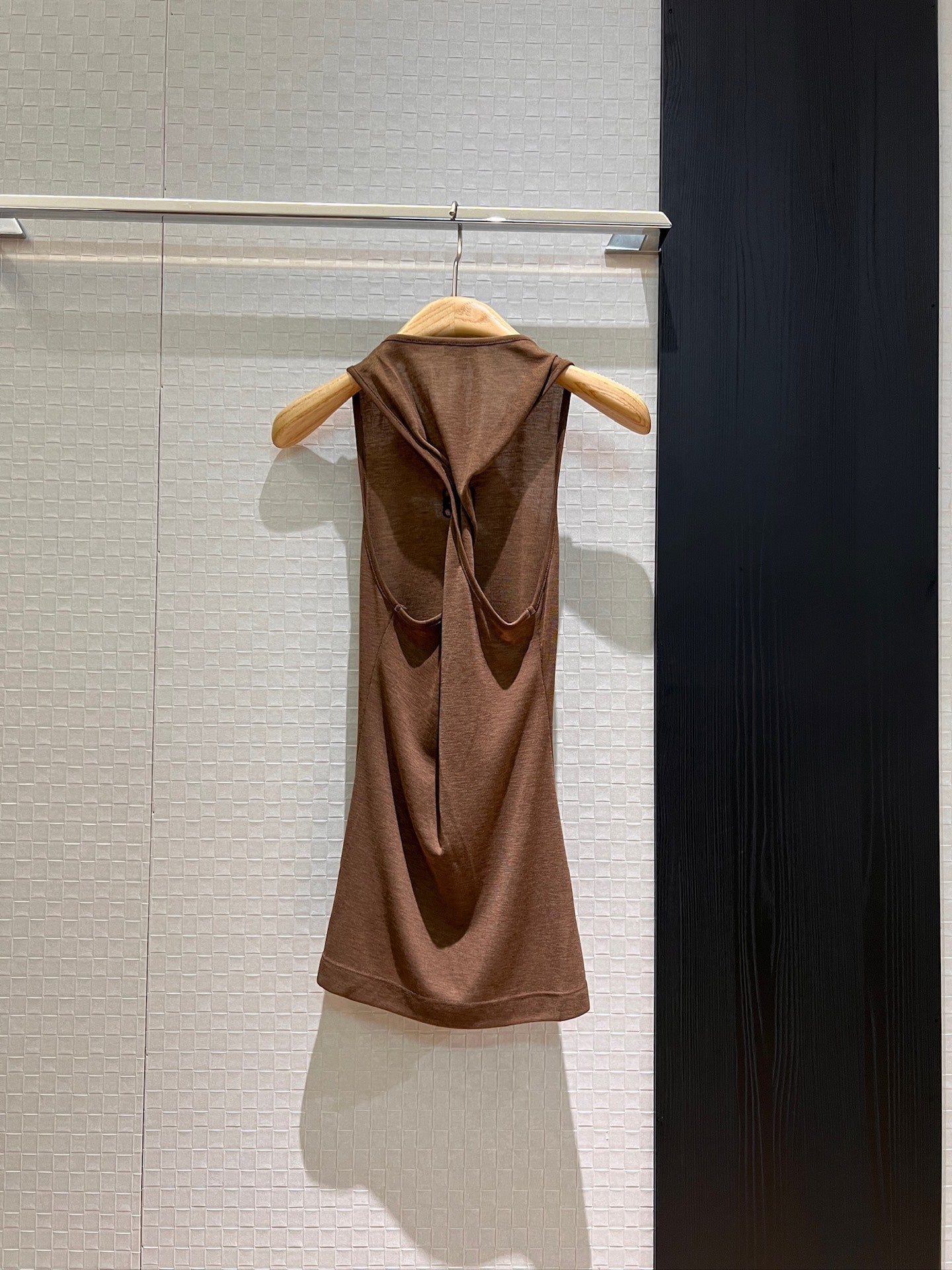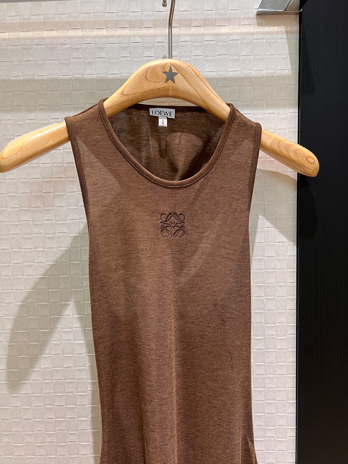 Loewe Embroidered Logo Knotted Vest Top Brown Polyester Fiber