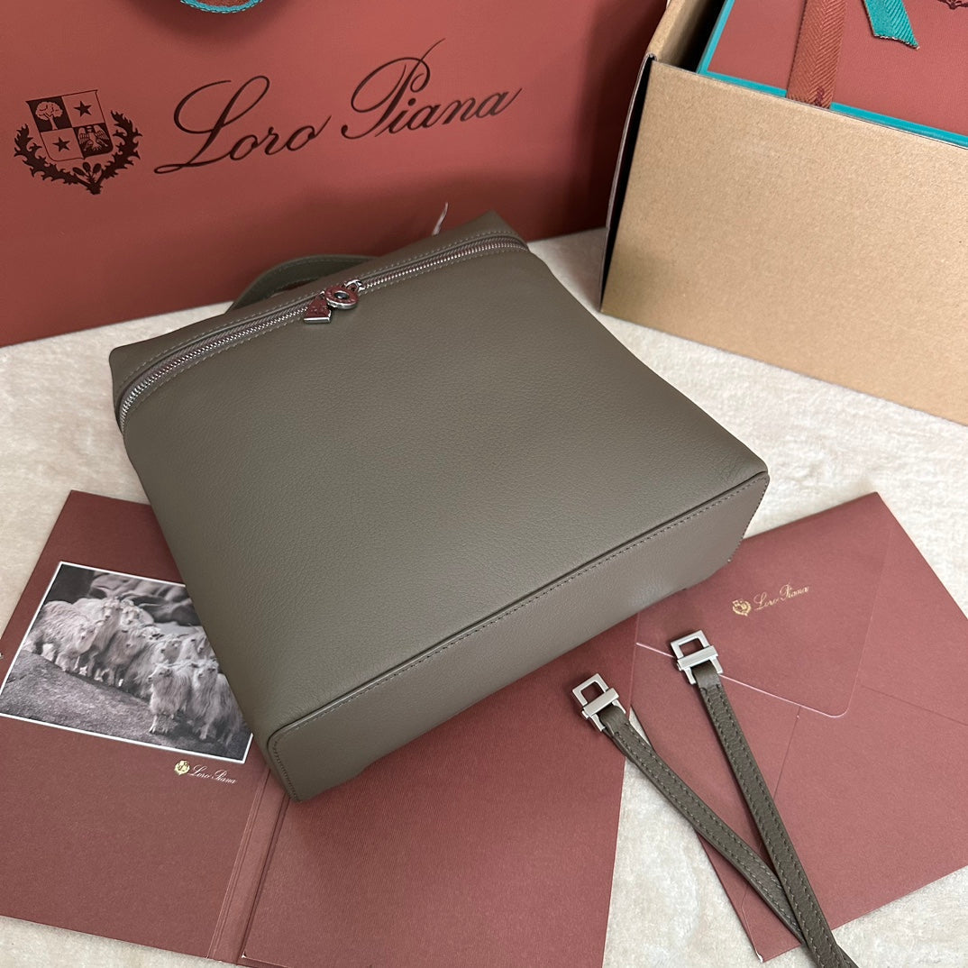 EXTRA POCKET BACKPACK L23.5 IN WOOD BROWN CALFSKIN WITH SILVER HARDWARE
