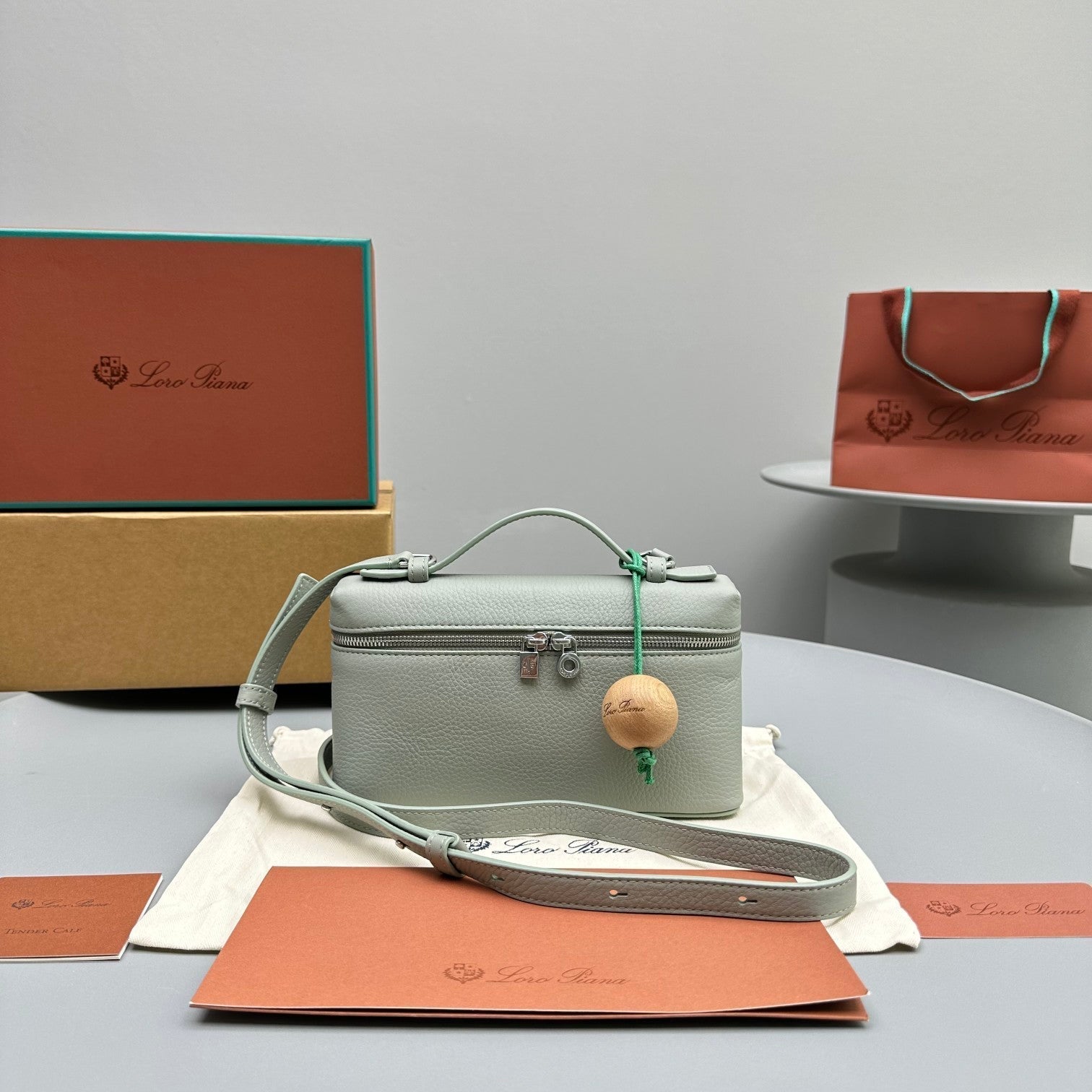 • Leather handle and shoulder strap