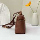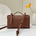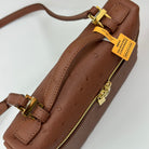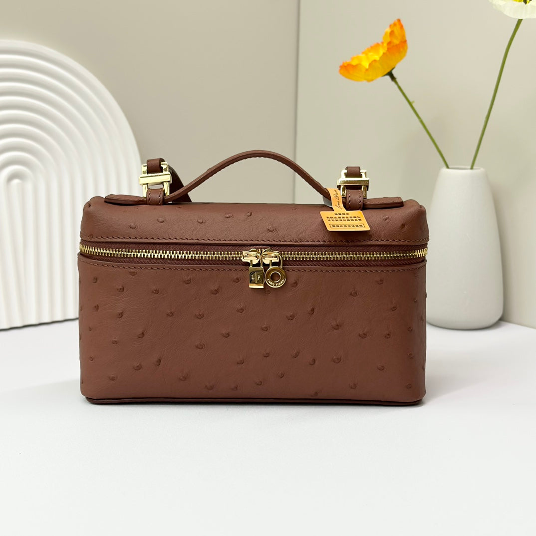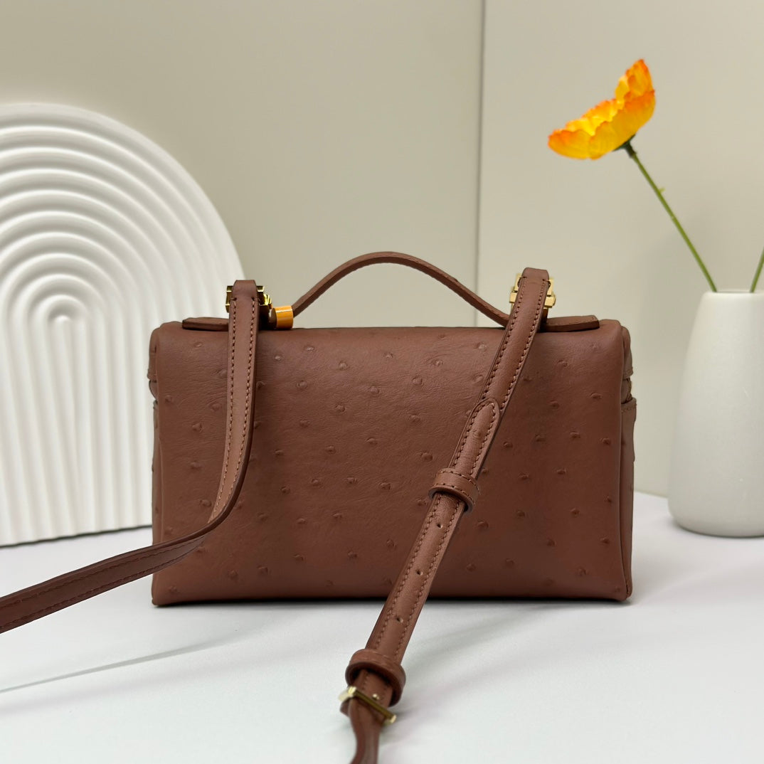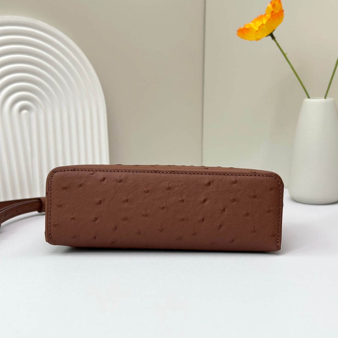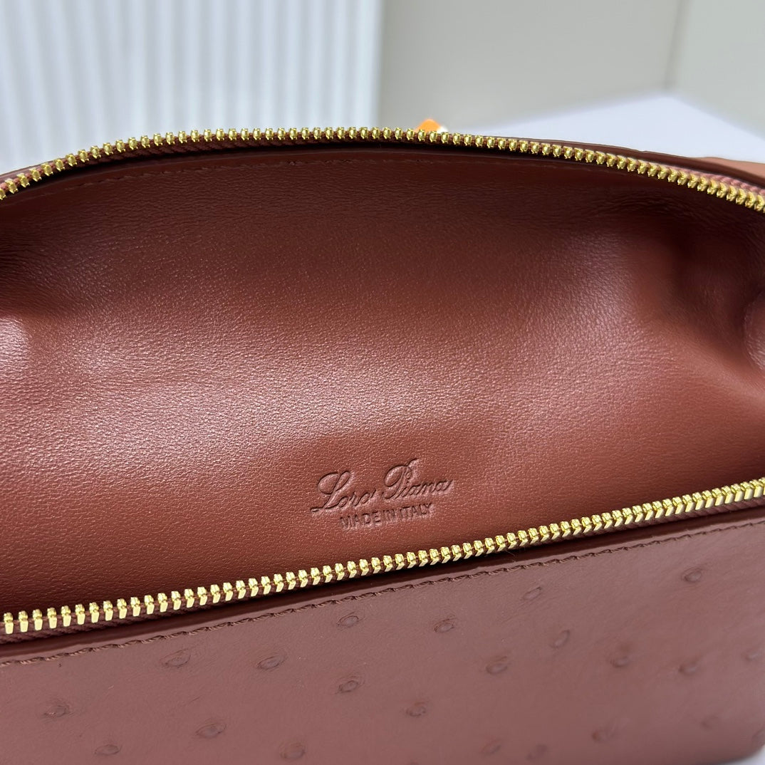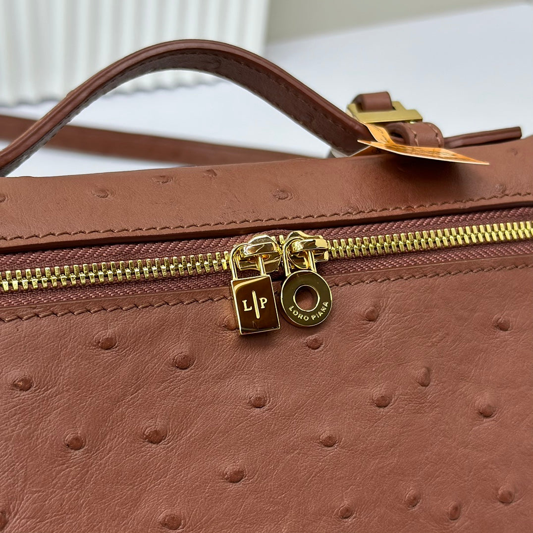 LP Extra Bag 19cm Ostrich Pattern Chestnut Brown Calfskin Gold Hardware