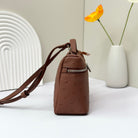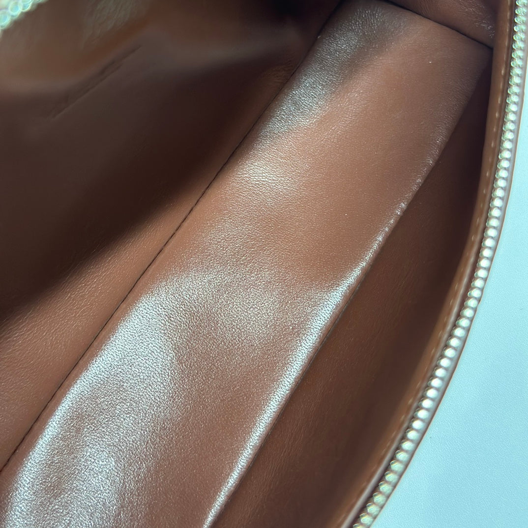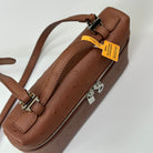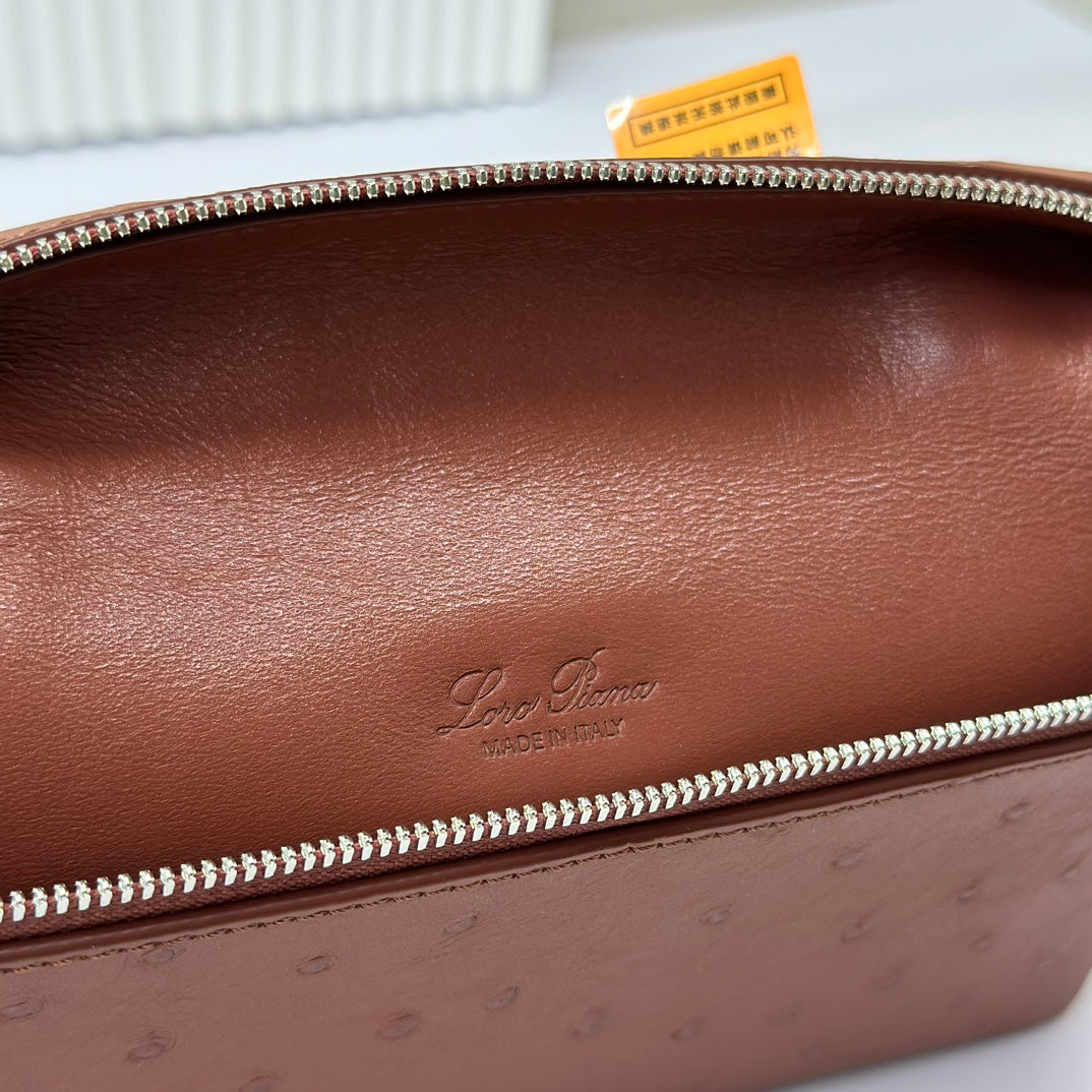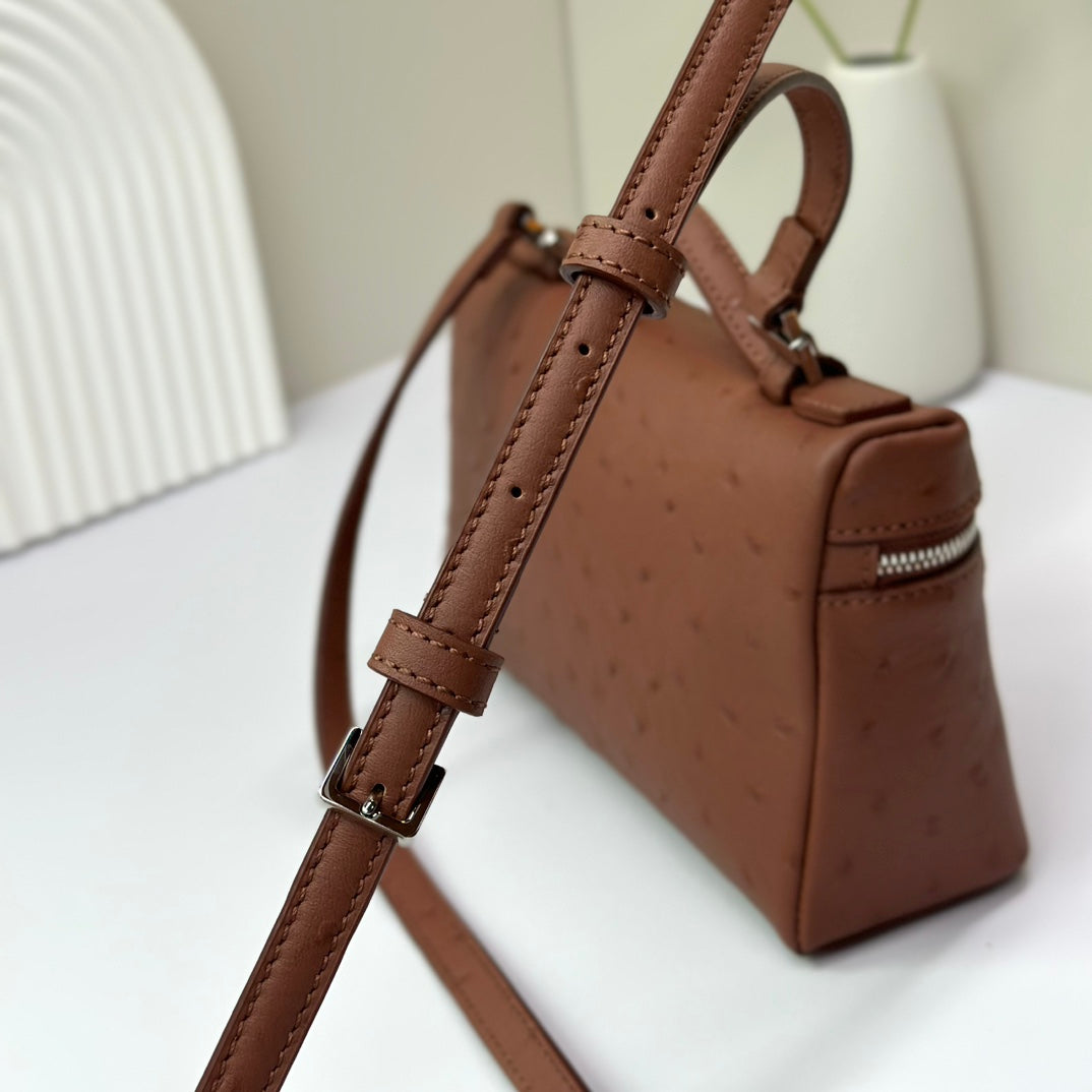 LP Extra Bag 19cm Ostrich Pattern Chestnut Brown Calfskin Silver Hardware