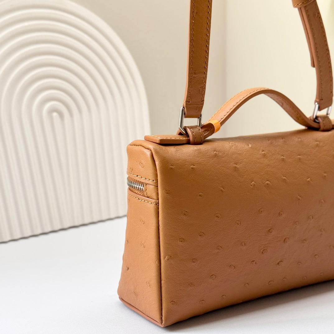 LP Extra Bag 19cm Ostrich Pattern Gold Calfskin Silver Hardware