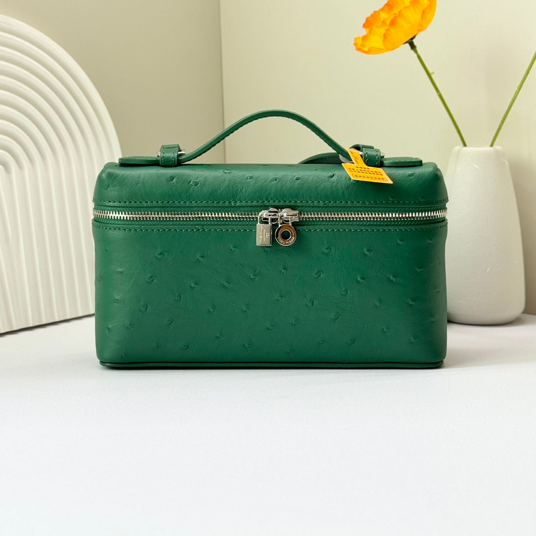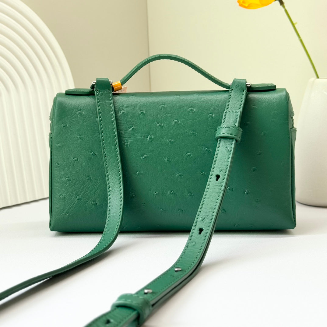LP Extra Bag 19cm Ostrich Pattern Green Calfskin Silver Hardware