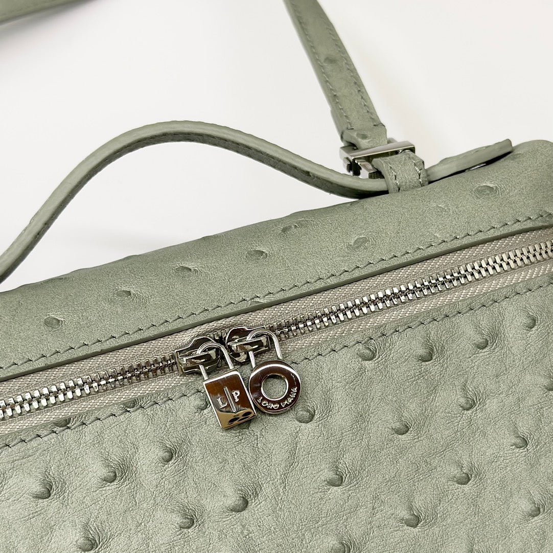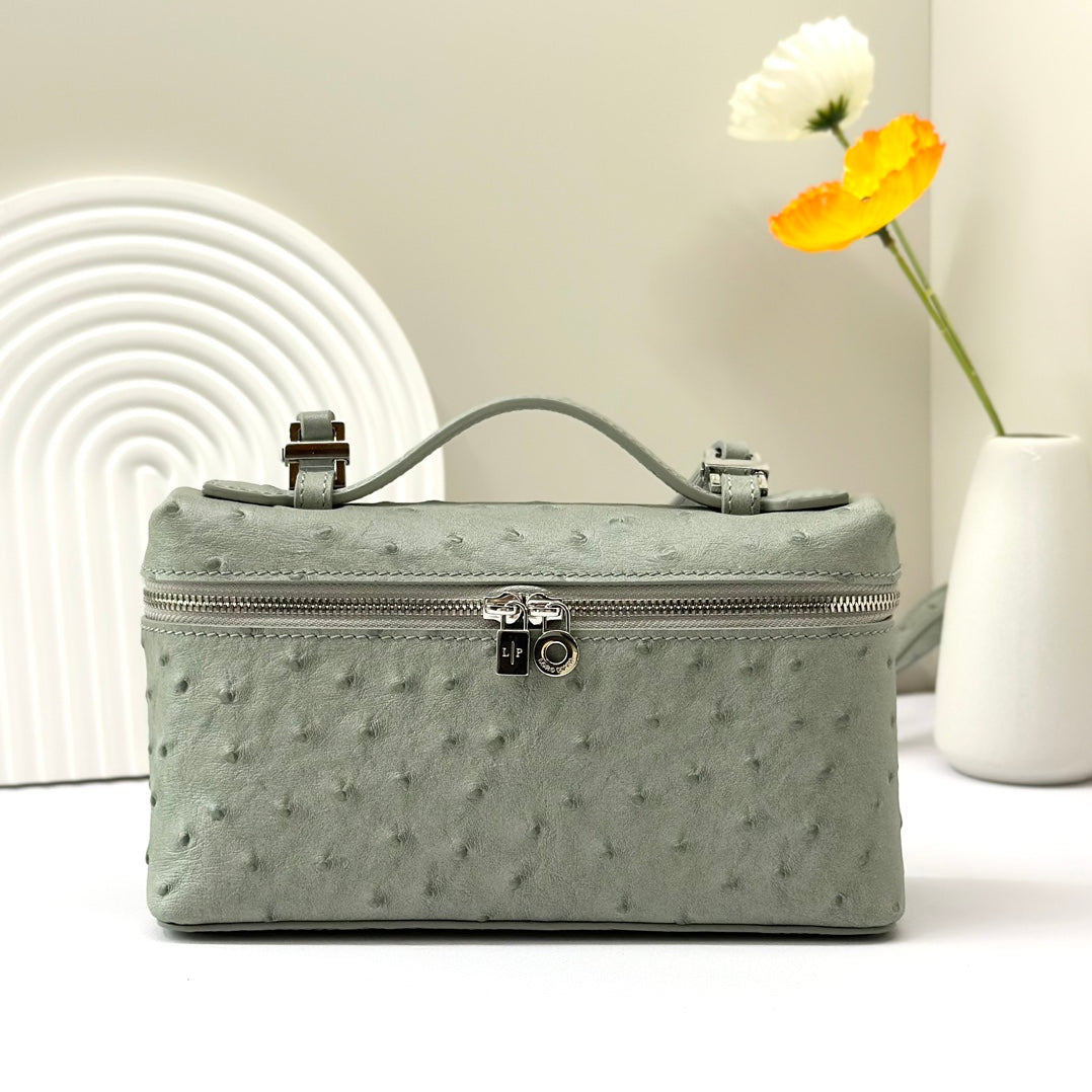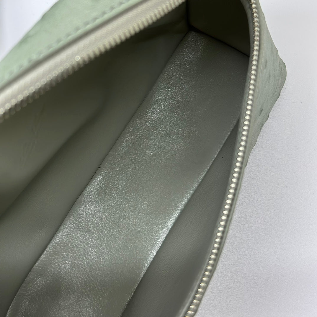 LP Extra Bag 19cm Ostrich Pattern Olive Gray Calfskin Silver Hardware
