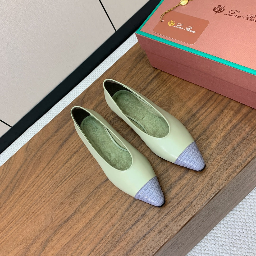 LP Rebecca Ballet Flats In Grey Matcha Green Cowhide