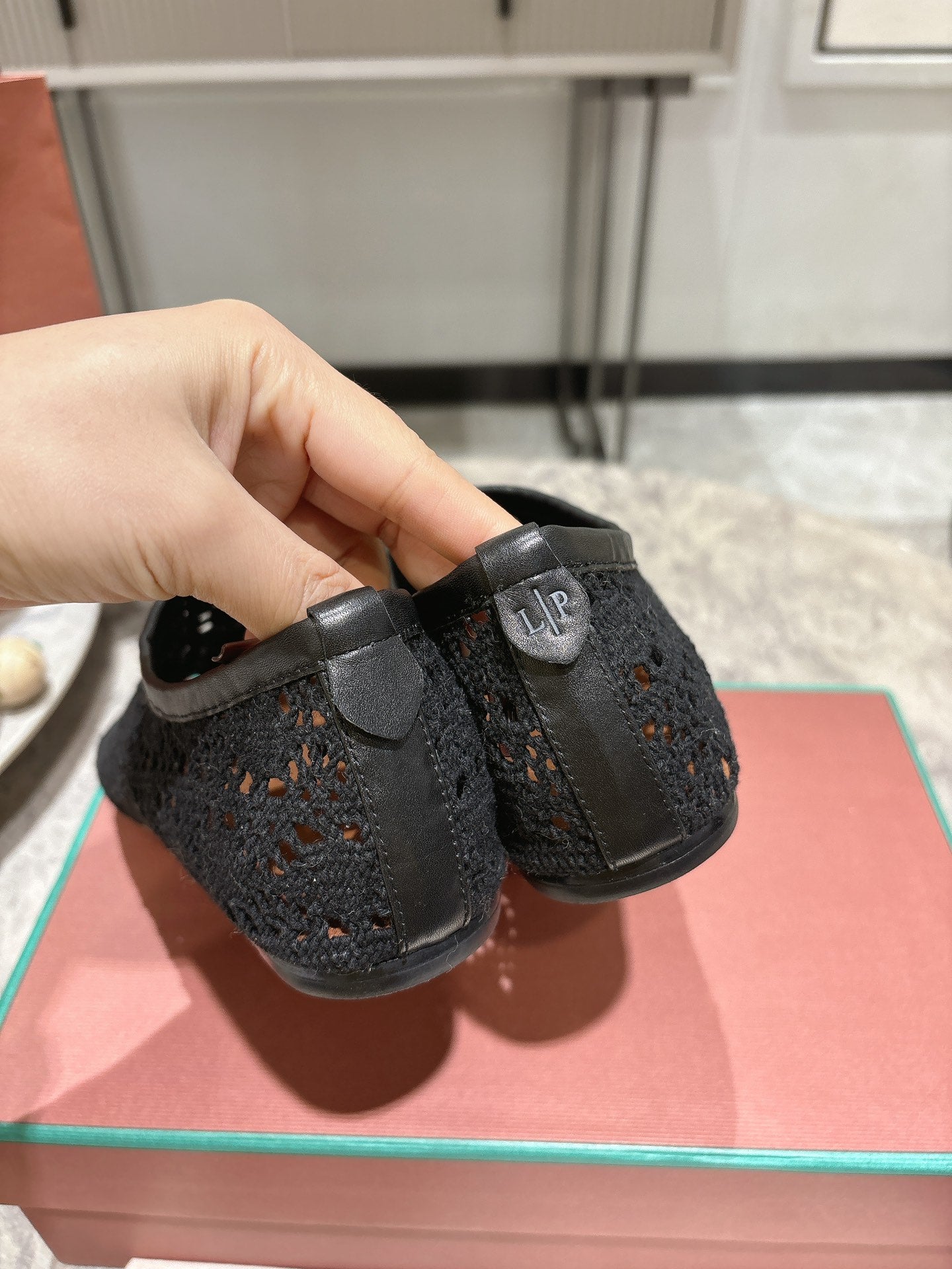LP hollow knit ballet flats black fabric 379027