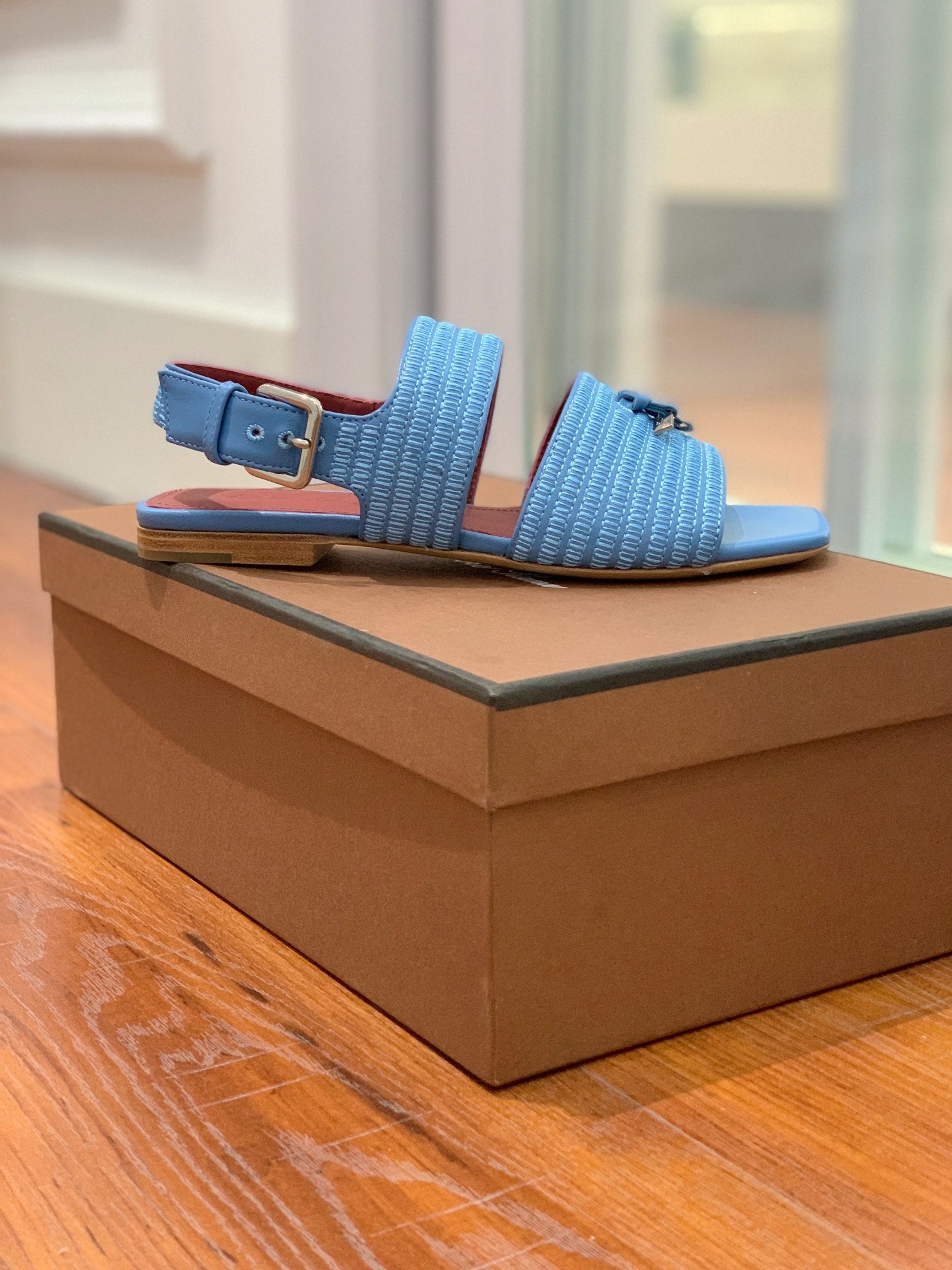 Springthly Charms Flat Sandals Cloud Blue Maroon Calfskin