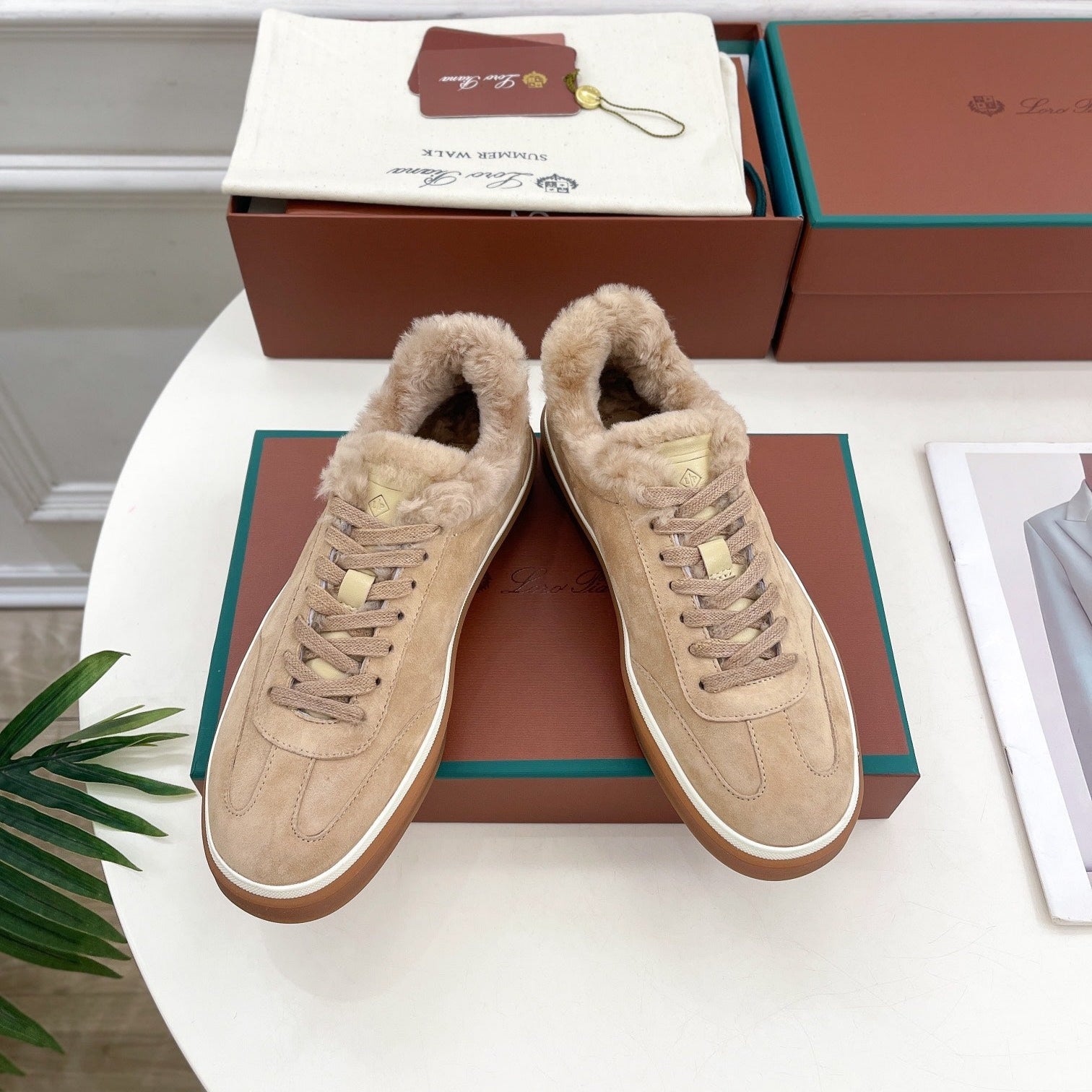LP Tennis Walk Sneaker In Light Brown Suede Lined With Wool Fleece 988272