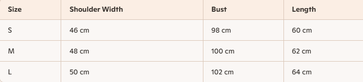 - For more information, please see the size guide below