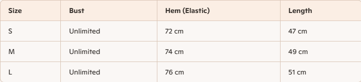 - For more information, please see the size guide below