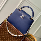 capucines mm 31.5 dark blue taurillon leather gold hardware