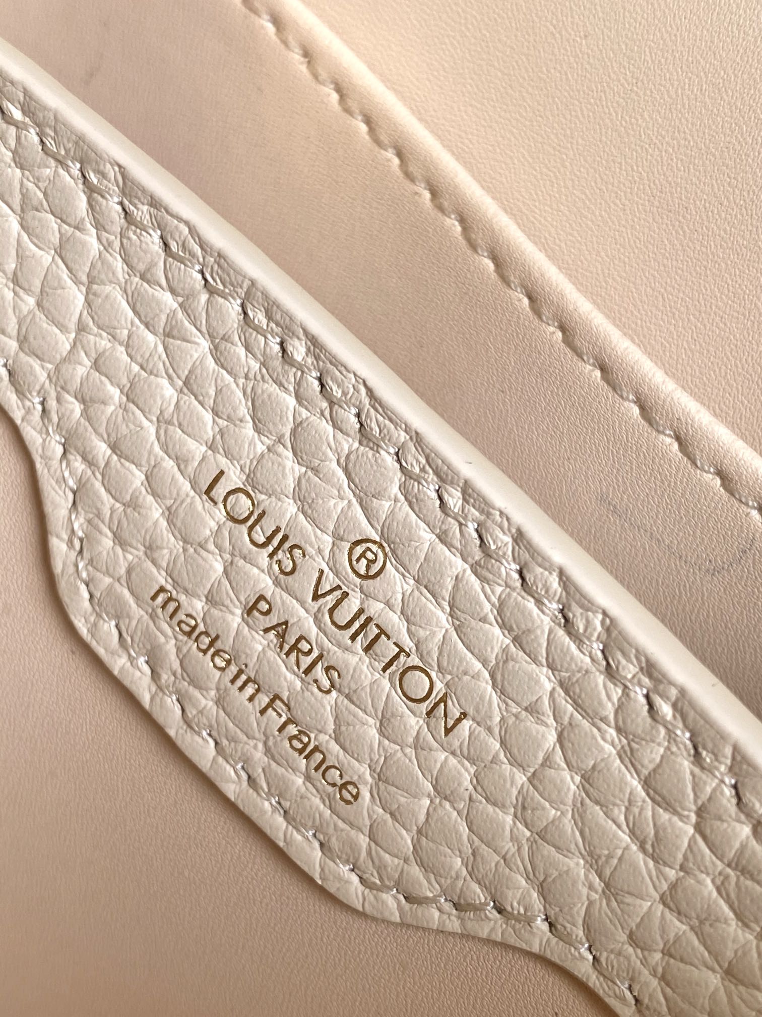 CAPUCINES NANO 16 IN PEARL WHITE MIX SKY BLUE TAURILLON GOLD HARDWARE