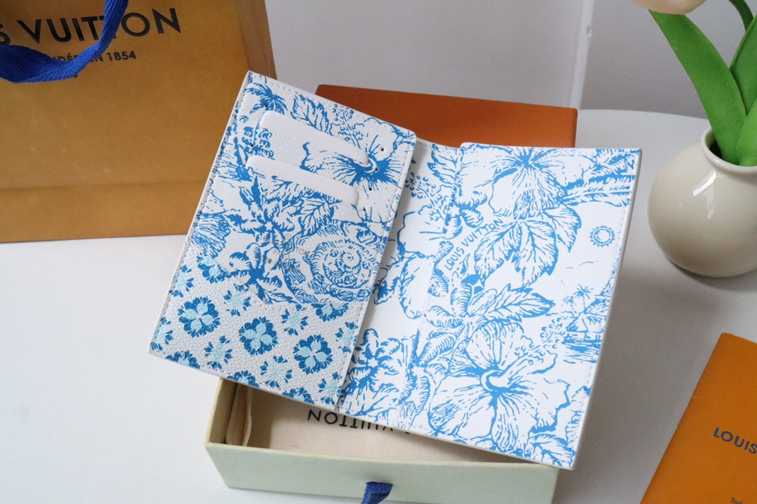 LV By the Pool Passport Card Holder Blue Monogarm Tiles Print Canvas 204707