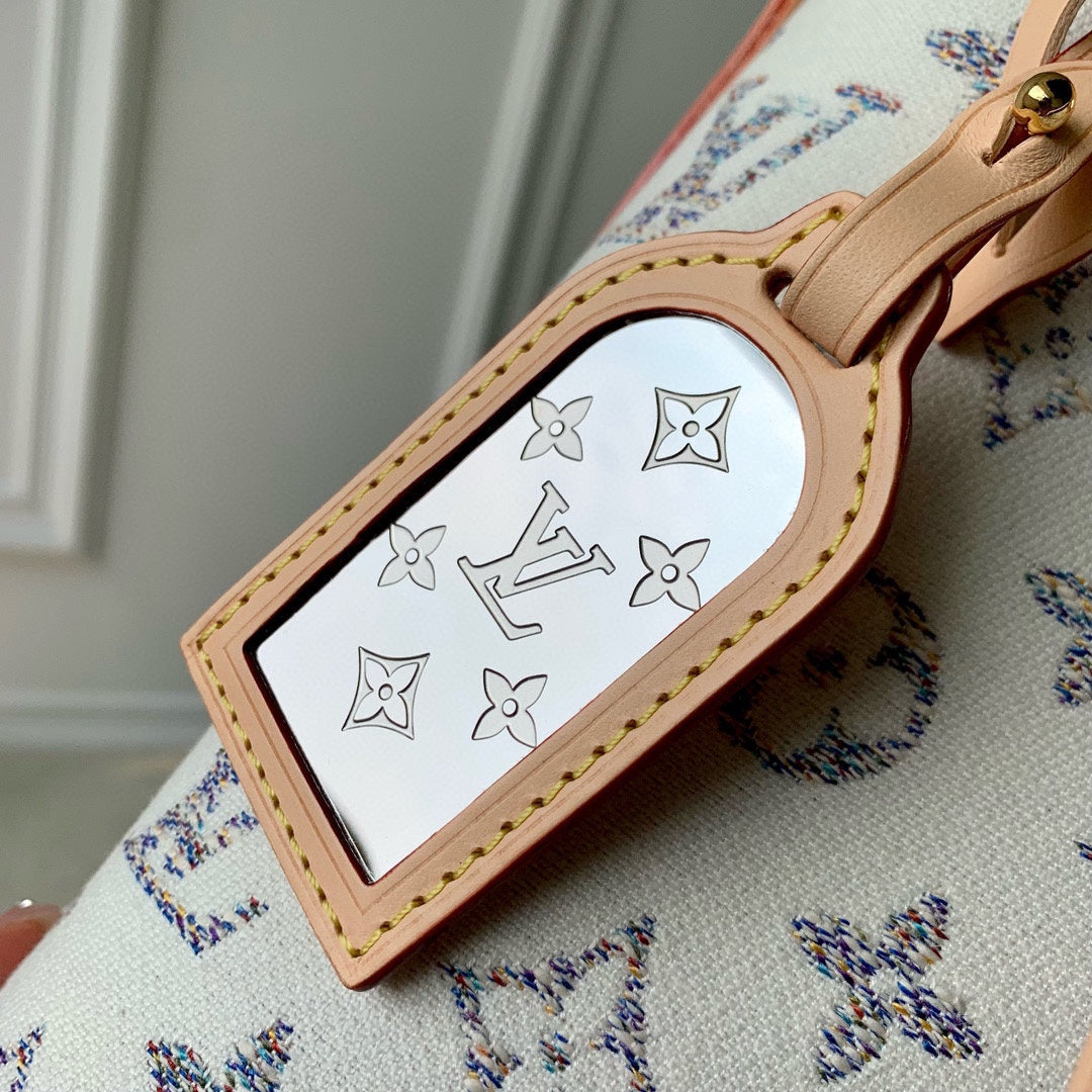 Lv CarryAll 29 Beige Leather White Monogram jacquard fabric