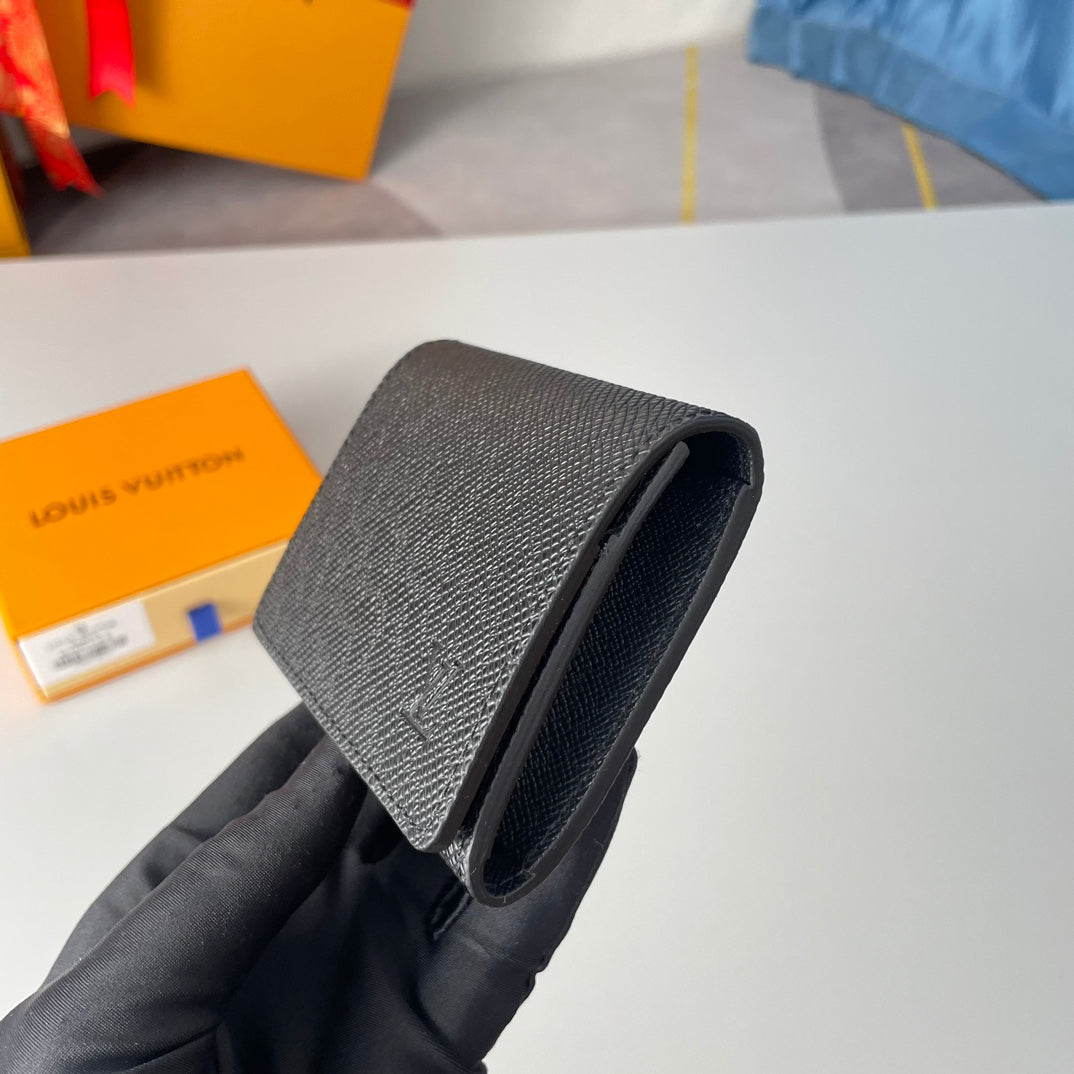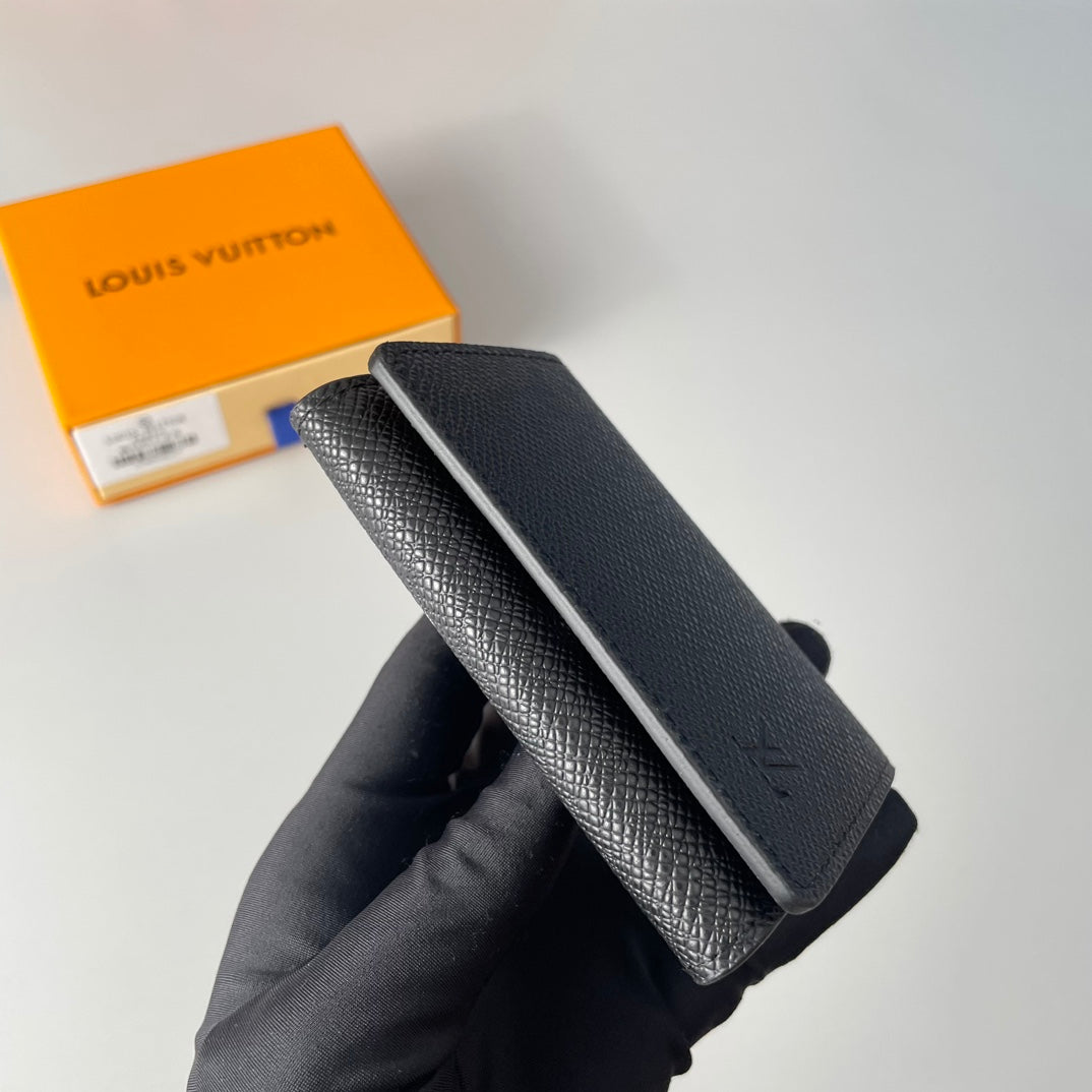 LV Enveloppe Carte De Visite Card Holder Black Taiga Leather 221503