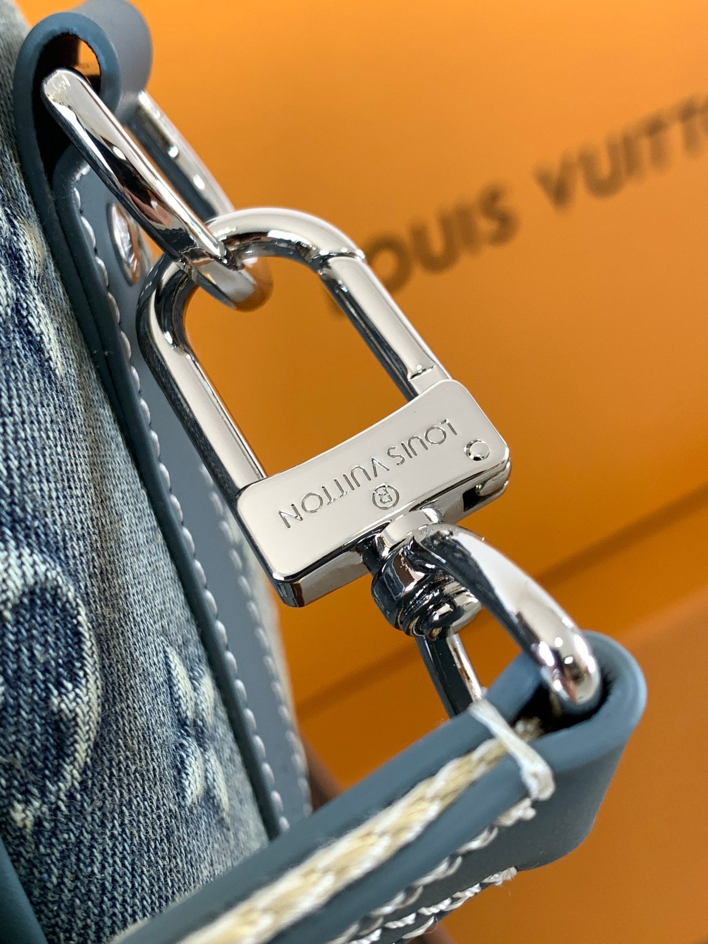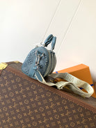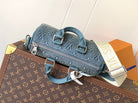 LV Keepall Bandoulière 25 Blue Monogram Washed Denim & Cowhide